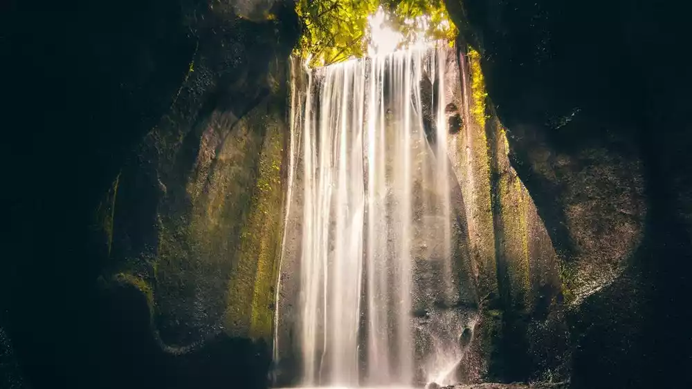 Bali's cave waterfall is a little-known natural secret. This waterfall is located in the Karangasem area of Bali, away from the tourist-intensive southern beaches.