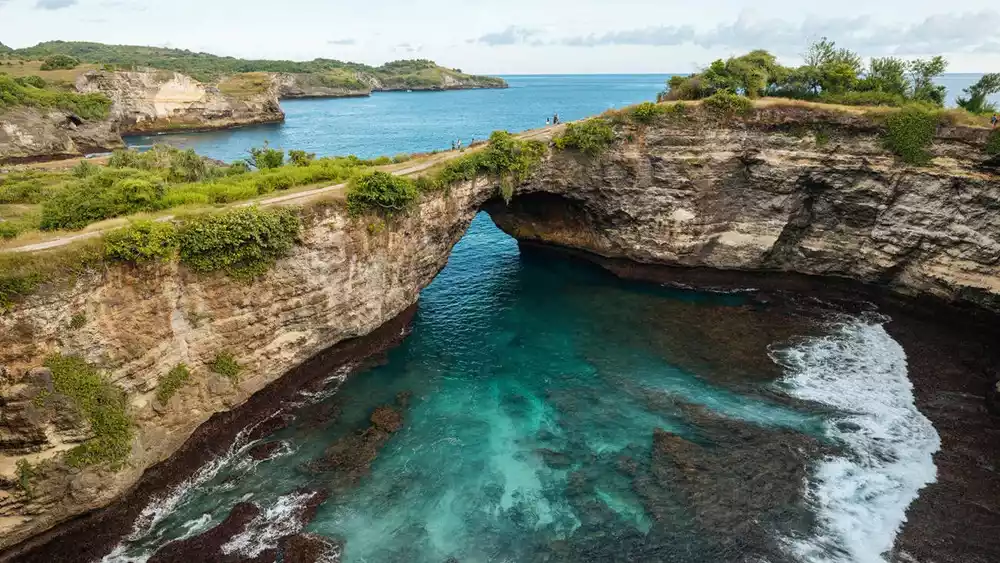 Bali's Broken Beach is located in the southwest of Nusa Penida Island. This unique geological formation, carved by wave erosion, forms a massive natural bridge connecting two cliffs. The surrounding waters are crystal clear, and the vibrant coral reefs attract a diverse array of marine life. Here, tourists can enjoy a peaceful beach break and explore Bali's natural beauty.
