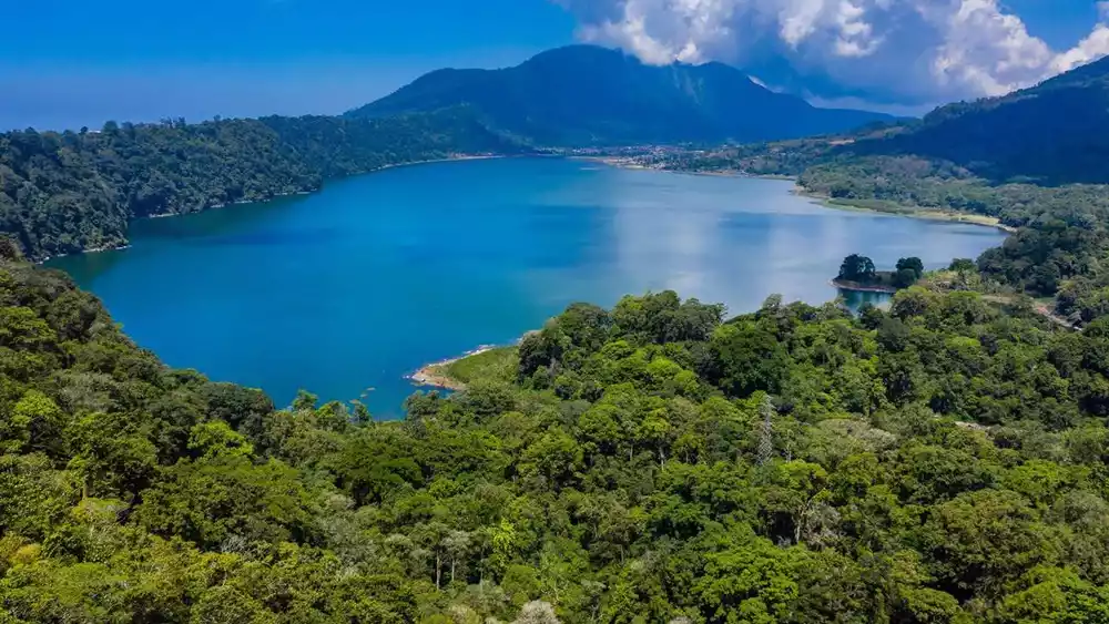 Bali's Twin Lakes were formed by tectonic shifts following a volcanic eruption. Surrounded by lush greenery and mountains, the lakes offer stunning scenery. Dedicated platforms and observation decks are located along the lakeshores, offering visitors a chance to admire the scenery and a great spot for fishing. In the evening, the mountain mist slowly descends, creating a magical atmosphere.