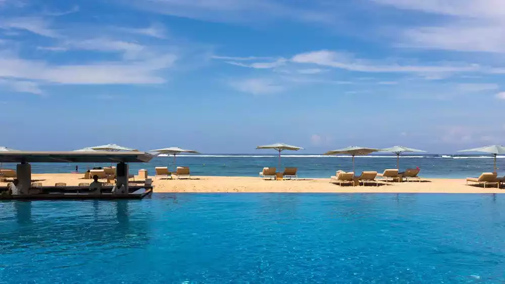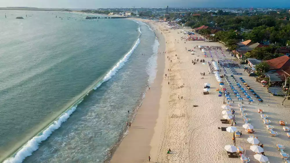 Bali's Seminyak is a vibrant seaside area known for its luxurious accommodations, fine dining, and bustling nightlife. Compared to Kuta in the south, the beaches are exceptionally tranquil during the day, making them ideal for relaxing and sunbathing. Seminyak is one of the finest beaches on the west coast, boasting soft golden sand and clear waters, perfect for surfing and watching the sunset.