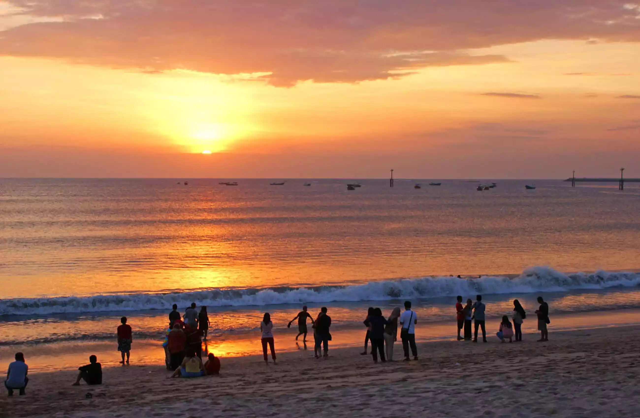 Jimbaran Beach is renowned for its stunning sunsets. Its sand is soft and fine, and its waters are crystal clear. Numerous seafood restaurants are located nearby, offering tourists a chance to savor delicious seafood while enjoying the stunning sunset. At night, the beach is ablaze with twinkling lights and melodious music, creating a romantic atmosphere that is the perfect place to relax and enjoy your vacation.