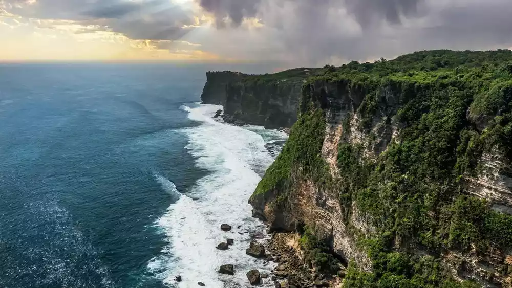 Located in northern Bali, Lover's Cliff is a place steeped in romance and legend. Its towering cliffs, nestled by the sea, offer breathtaking views. Legend has it that a poignant love story unfolds here, adding to its mystique and romance. The cliffside scenery is breathtaking, with waves crashing against the rocks against a backdrop of blue skies and white clouds. It's also a popular spot for couples, where they make vows of lifelong love, witnessed by the sea and sky.