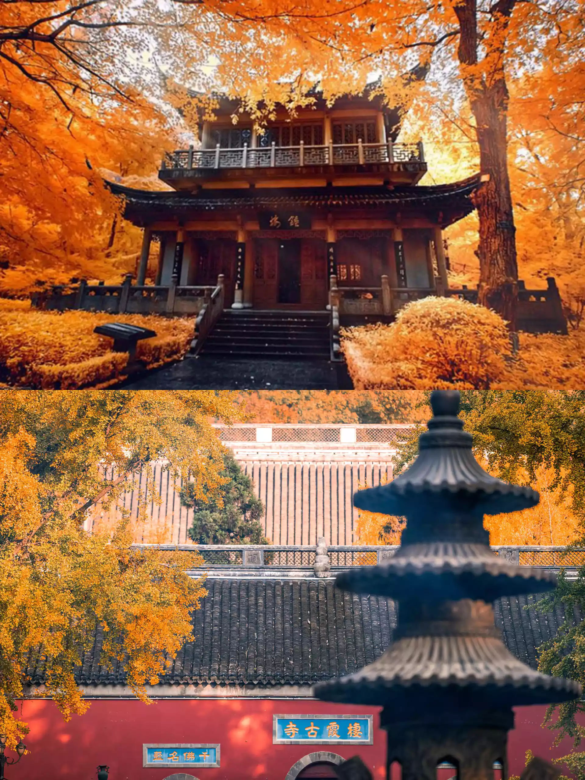 The autumn in Linggu Temple is beautiful and unique. The autumn in the ancient temple is filled with the beauty of tranquility, the spirit of autumn and Zen, tranquility and vitality.