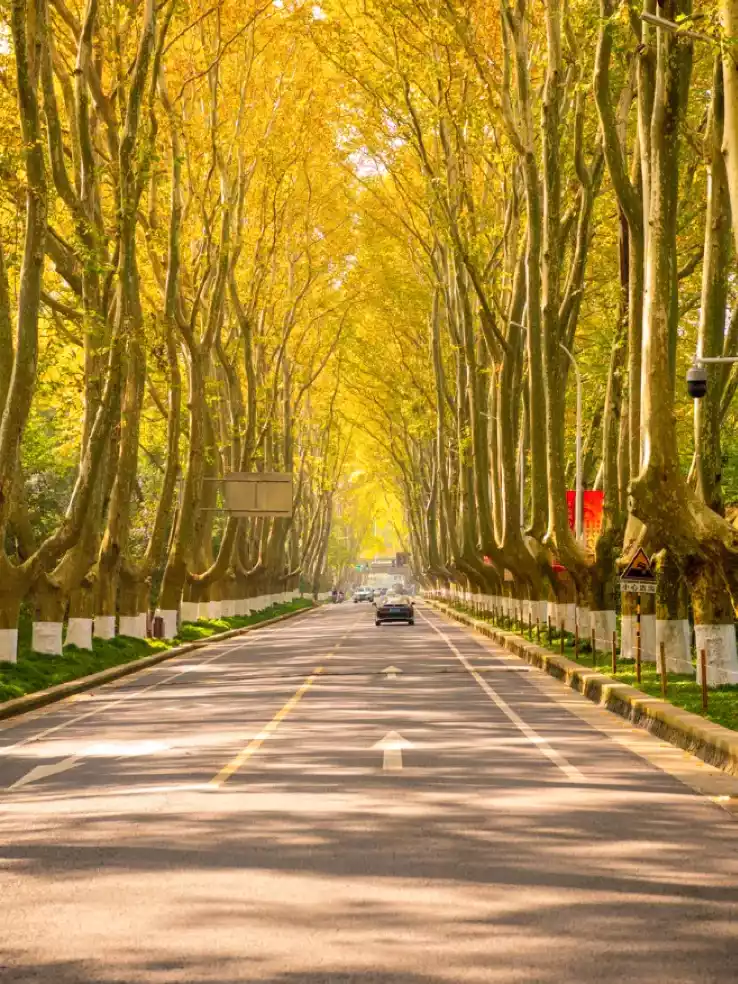 The beauty of the plane trees is evident in the vast expanse of Nanjing. The most beautiful road in Nanjing, a city dotted with plane trees, is Lingyuan Road, especially in late autumn when the leaves turn yellow and blend with the afternoon sun, bringing a sense of autumn warmth to the heart.