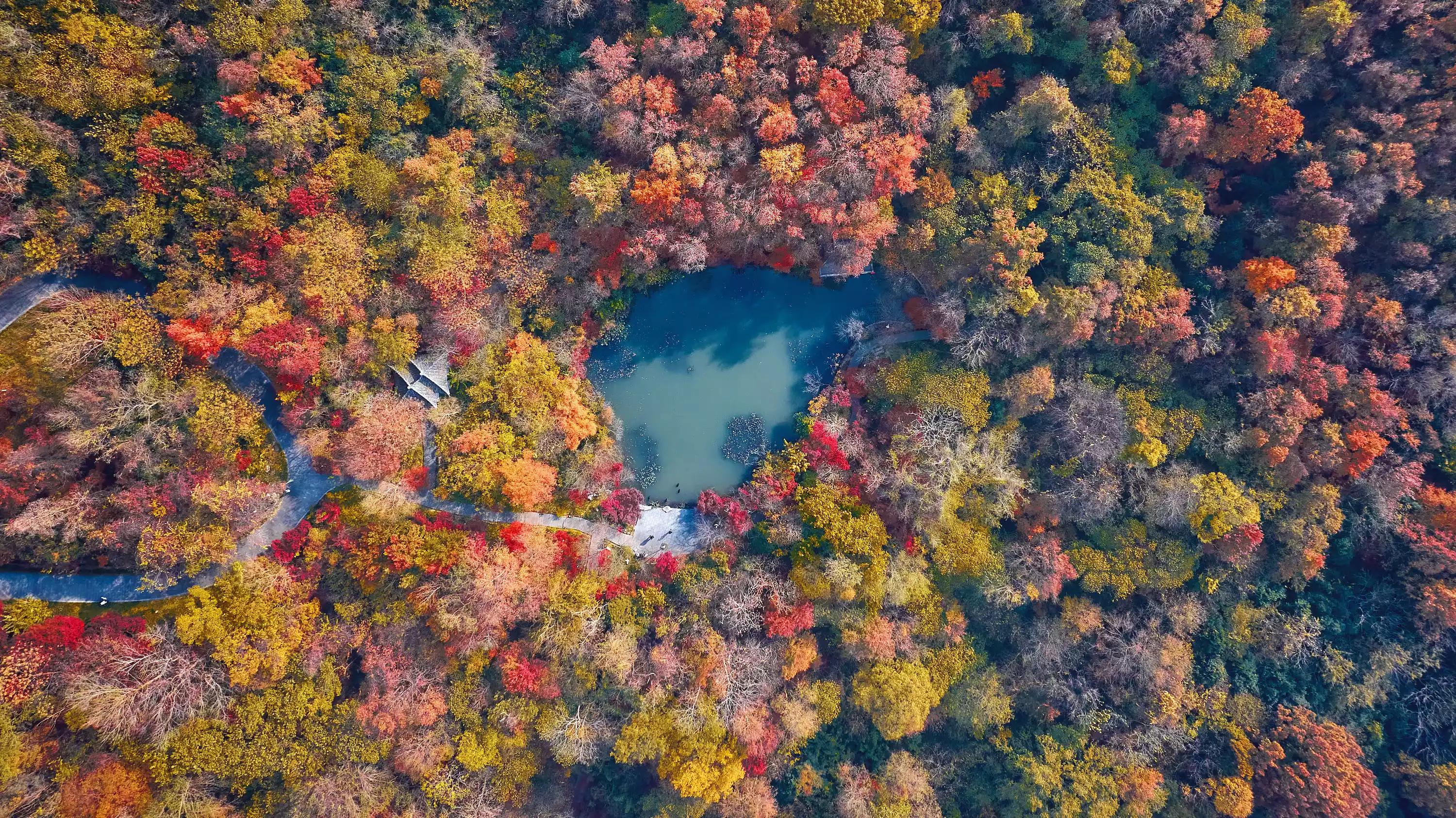 Zhimaling, known as Nanjing's "Little Jiuzhaigou," offers breathtaking autumn scenery you shouldn't miss. In early winter, frost smears the lakeside, and the fir forests transform into a cascade of red and yellow, reminiscent of a fairytale scene.