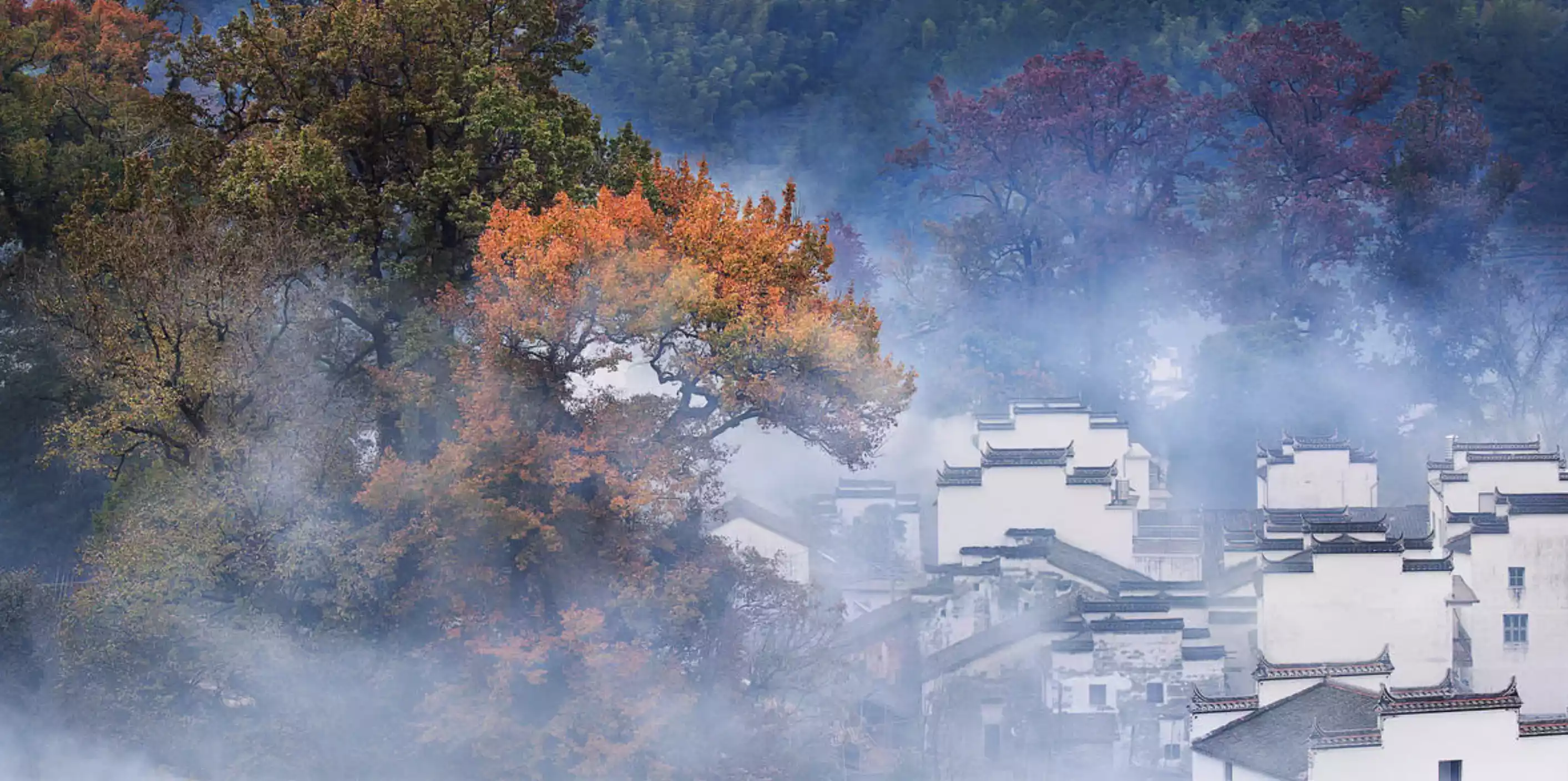 The morning mist, smoke from cooking fires, whitewashed walls and black tiles, and red maple trees condense the autumn colors of Jiangnan into a picture scroll. Be sure to climb to the observation deck in the early morning to witness the morning light over Lu Village. The sunlight filters through the mist and shines onto the village, creating a fairy-like scene.