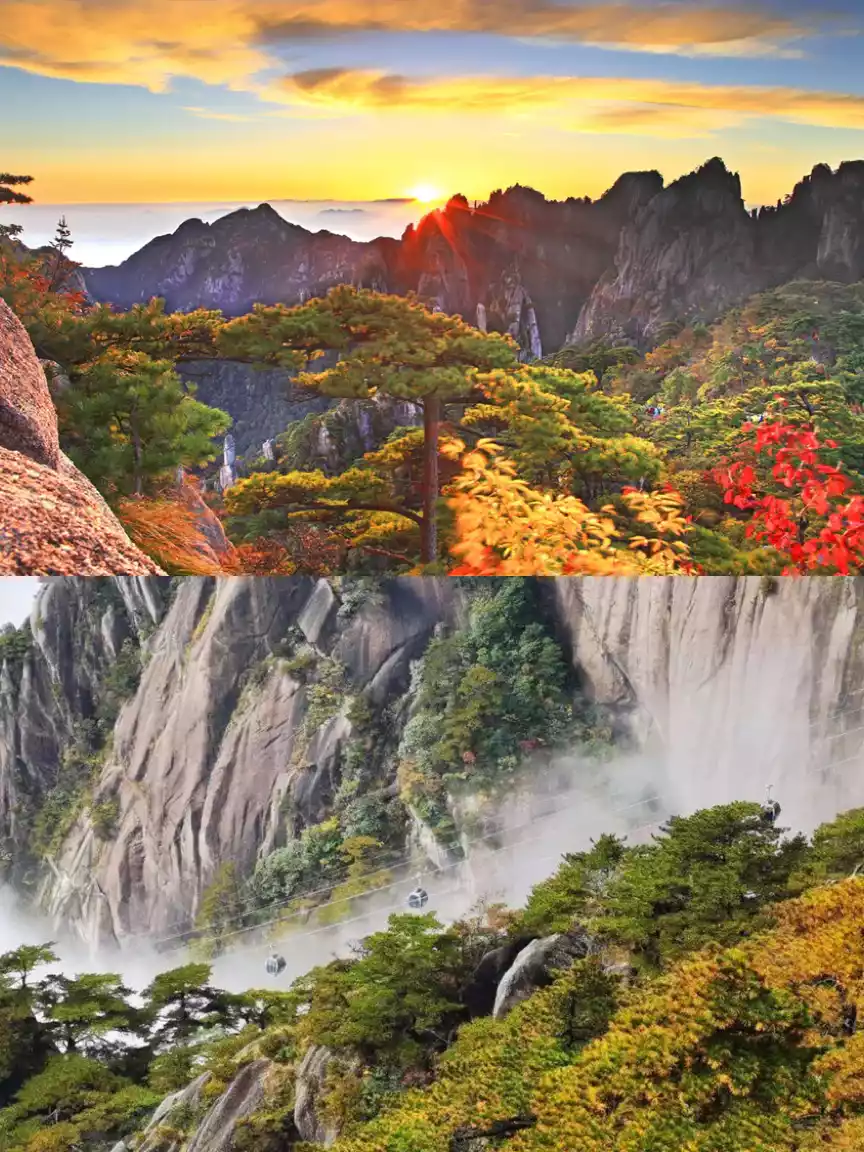 The "No. 1 Strangest Mountain in the World" with its beautiful scenery is a world natural and cultural heritage, and is famous for its unique pines, strange rocks, sea of clouds and hot springs. From November to May of the following year is the peak period of sea of clouds in Huangshan. In late autumn, the autumn scenery of Huangshan is even more charming, with colorful red, orange and yellow maple leaves, layer upon layer. Riding the popular train through the autumn Xihai Grand Canyon is like walking through a colorful oil painting.