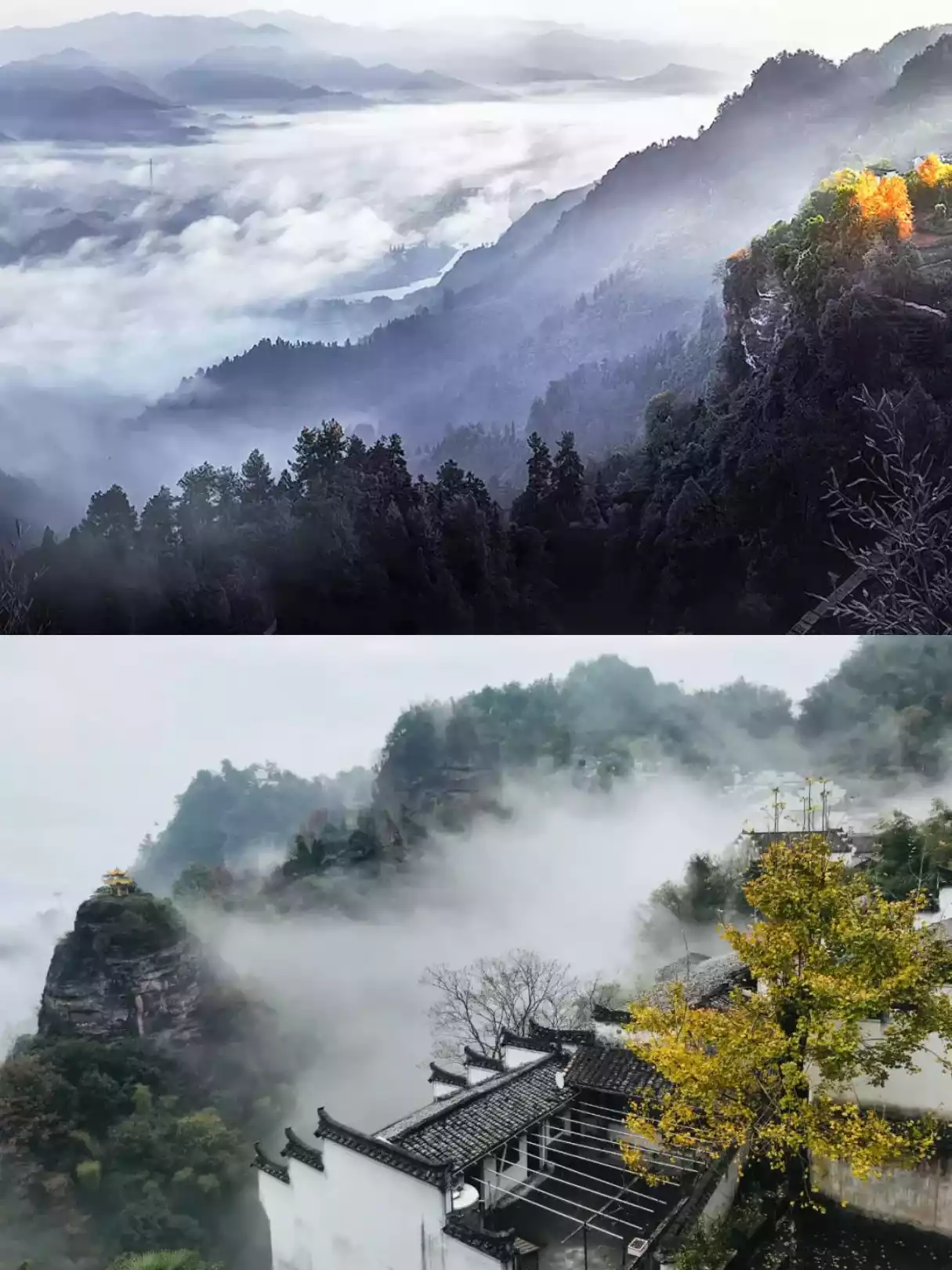 Muligong Village, nestled on a mountain ridge, is surrounded by steep cliffs on three sides and nestled against a mountain on one side. Known as "Huangshan's most beautiful alpine village," it boasts a rich Hui culture, beautiful scenery, and a tranquil retreat, perfect for a short stay. In autumn, the village is enveloped in golden ginkgo leaves and fiery red maple leaves, creating a fairytale-like beauty. When the weather clears after rain, a sea of clouds shrouds the village, transforming it into a city in the sky. It's easy to understand the legend that Huangdi achieved immortality by refining elixirs in Huangshan; this truly is a paradise.