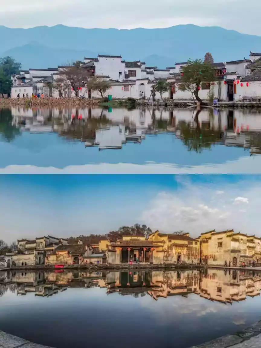 Hongcun, also known as the "Ox-Shaped Village," is known as the "Village in a Painting." It is not only the birthplace of Hui culture but also a key gathering place for ancient Hui merchants. The village boasts 137 Ming and Qing dynasty buildings, surrounded by an intricate water system designed by our ancestors, resembling a flowing Weizhou ink painting. In autumn, the whitewashed walls and green tiles of the Zheng-style buildings, set against the backdrop of golden rice paddies and fiery red maple leaves, create a sense of ancient simplicity and tranquility, as if stepping into the paradise described by Tao Yuanming.