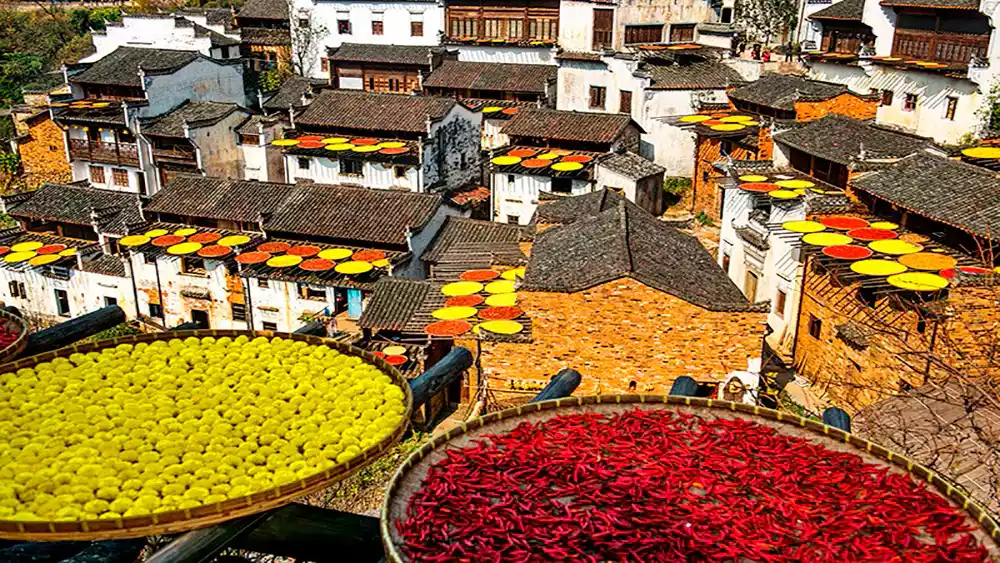 🍁Huangling: With over 500 years of history, this ancient village is known for its signature "drying autumn leaves." Every November, the village is blanketed in crimson maples and ginkgo trees.
