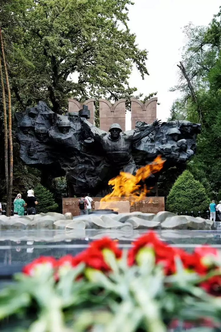 Near the Ascension Cathedral, there is a monument to the 28 Panfilov warriors, which is mainly to commemorate the heroes of the 16th Regiment of the 316th Panfilov Guards Rifle Division of the former Soviet Army who died in the Battle of Moscow in 1941. On the long platform in front of the sculpture, there is also an eternal flame symbolizing the heroic spirit of the 28 warriors that will never be extinguished.