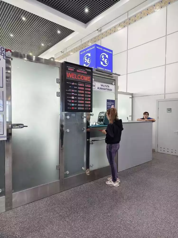 👆Tashkent Airport, you can exchange currency and buy phone cards after passing through customs