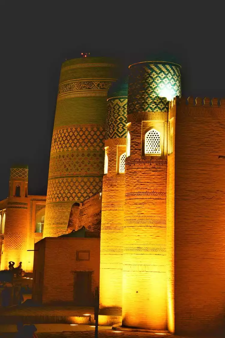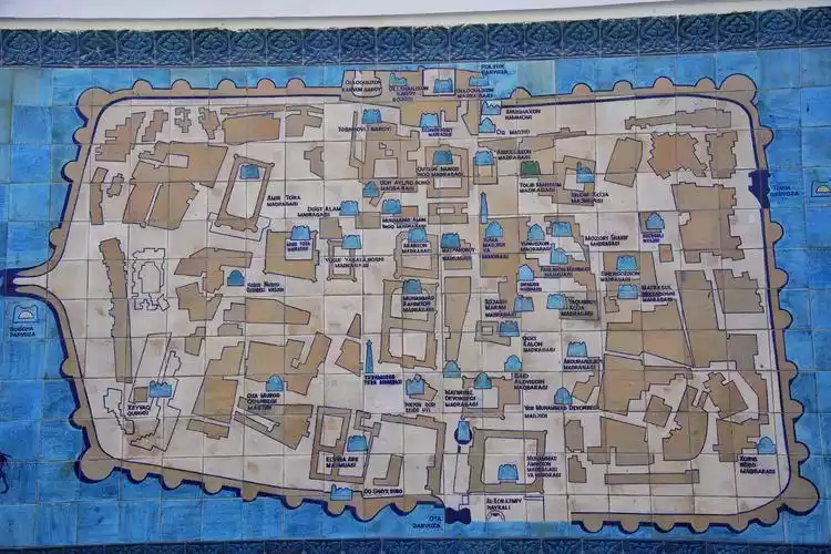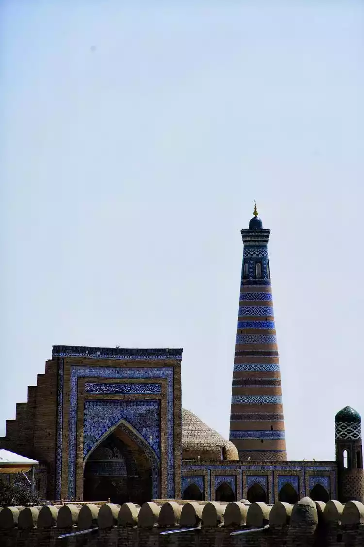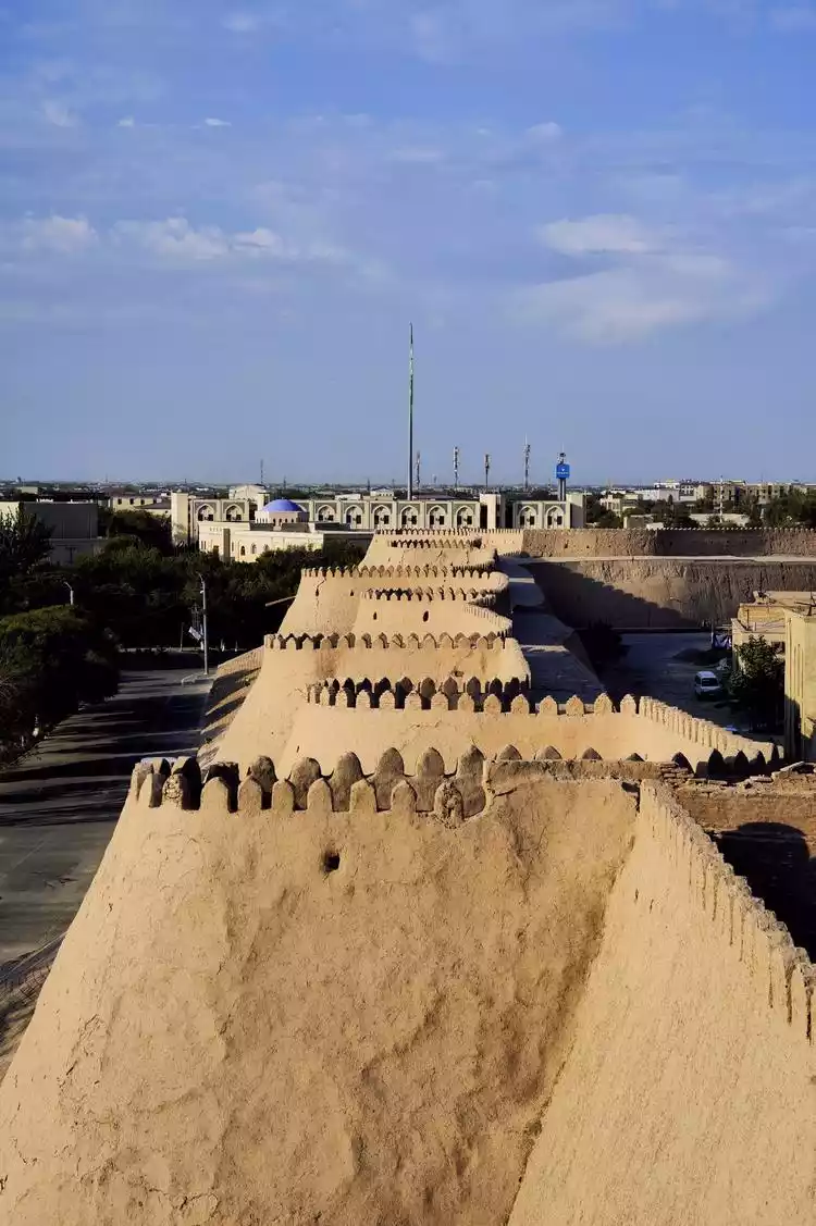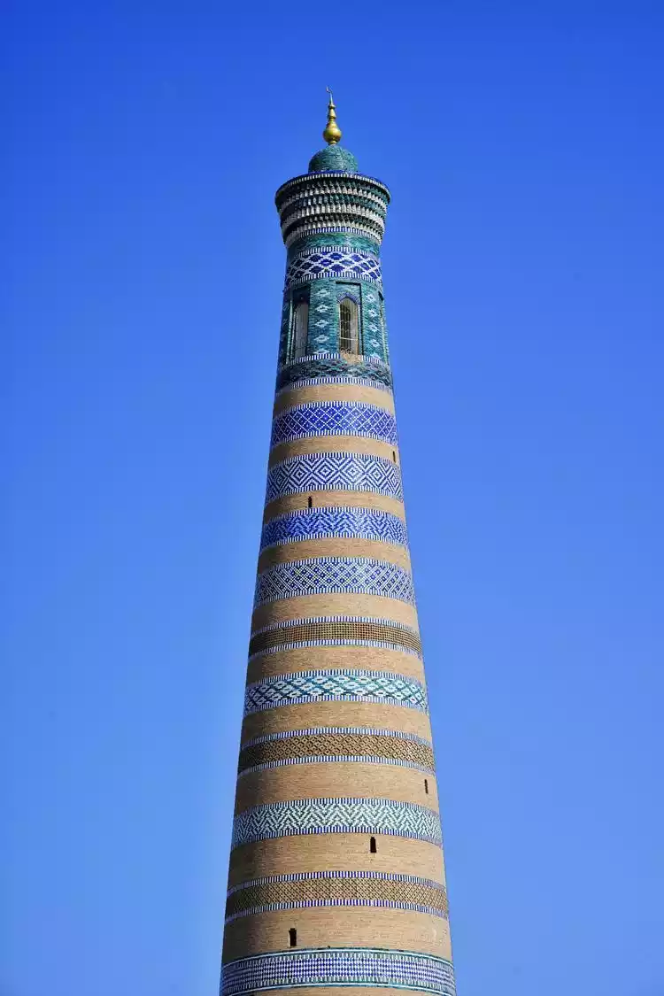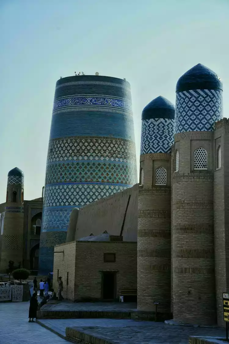 The ancient city is divided into two parts: the inner city of Ichin Kala (generally known as the ancient city) and the outer city. The inner city is an "open-air museum group" with dense ancient buildings. It has nearly 60 cultural relics, including 8 mosques, 31 madrasa, 14 minarets, 12 mausoleums and 6 royal palaces. It is also the first world cultural heritage in Uzbekistan and was once the capital of the Khanate of Khiva, one of the three major khanates in Central Asia.