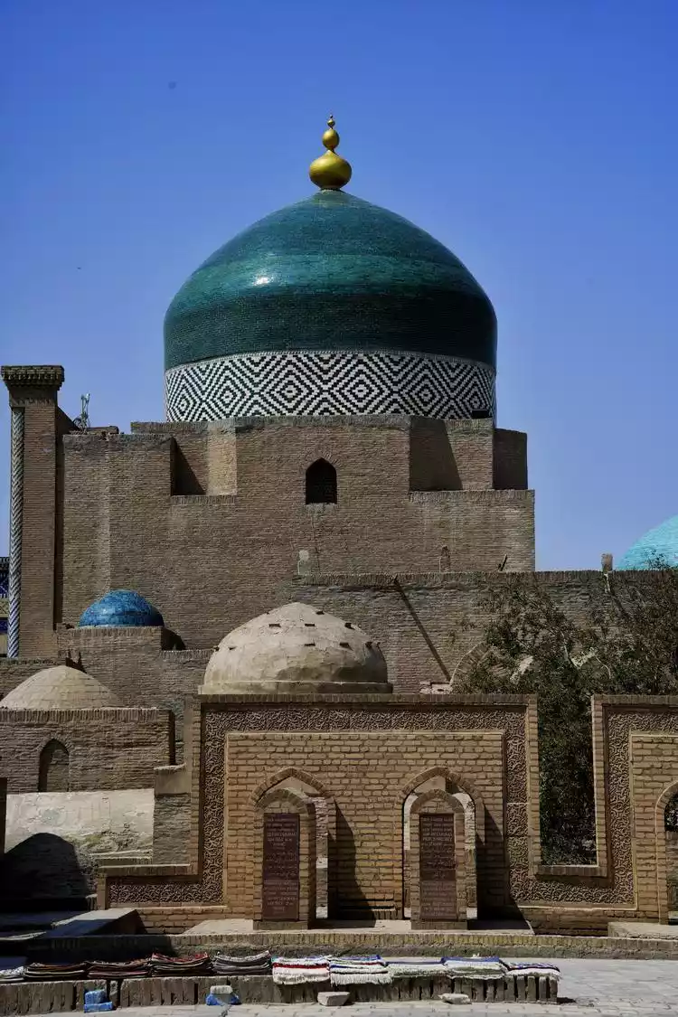 The Mausoleum of Palavon Muhammad is arguably the most magnificent site in the ancient city of Khiva. Successive Khiva khans sought to be buried as close to it as possible. Palavon Muhammad was the region's foremost wrestler, undefeated throughout his life. Even today, before various sporting events, local athletes still visit Palavon's mausoleum to pray for good luck.