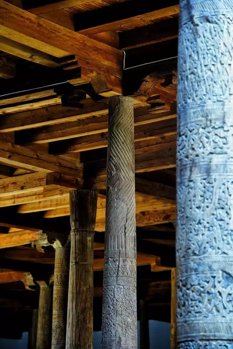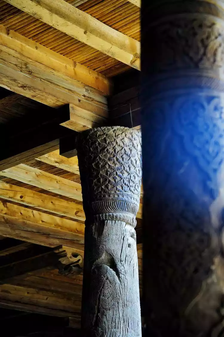 Even without a ticket, you can still peek inside through the open door. Rather than calling it a mosque, it would be more accurate to call it a "carved wooden column museum."