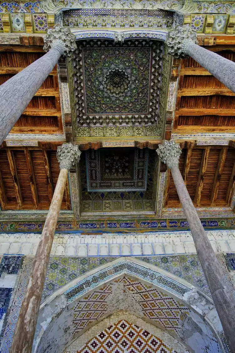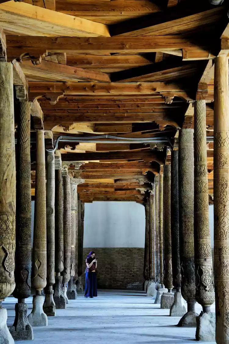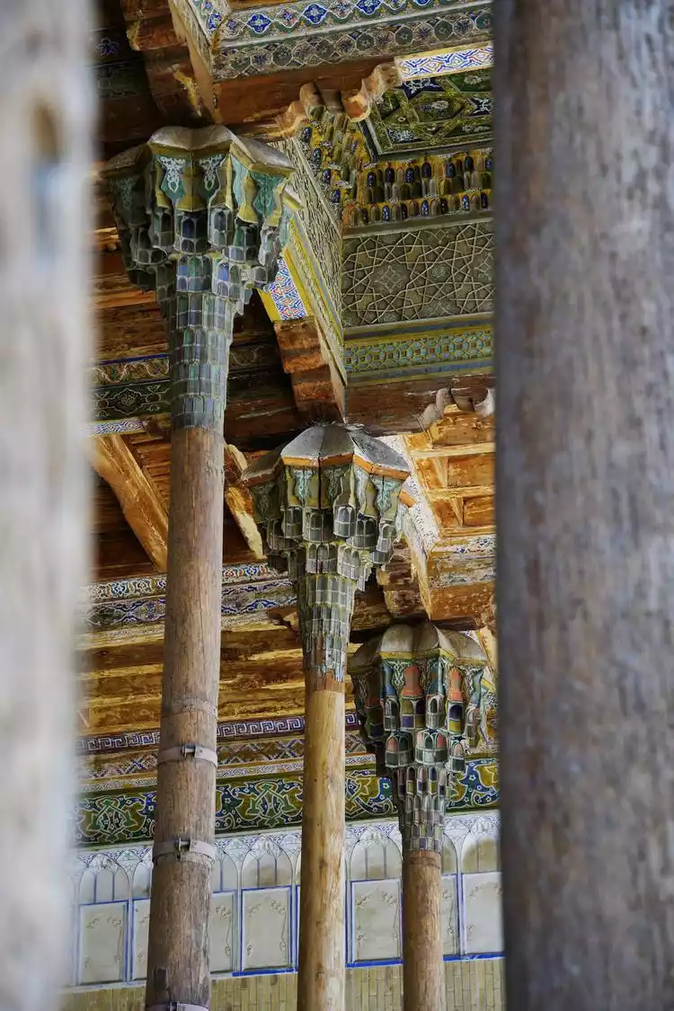 The 20 massive carved wooden columns at the entrance are the finishing touch, hinting at luxury. In Uzbekistan and even Central Asia, wood is far more valuable than stone or brick. Furthermore, 20 such tall wooden columns are as rare as the golden nanmu in my country.