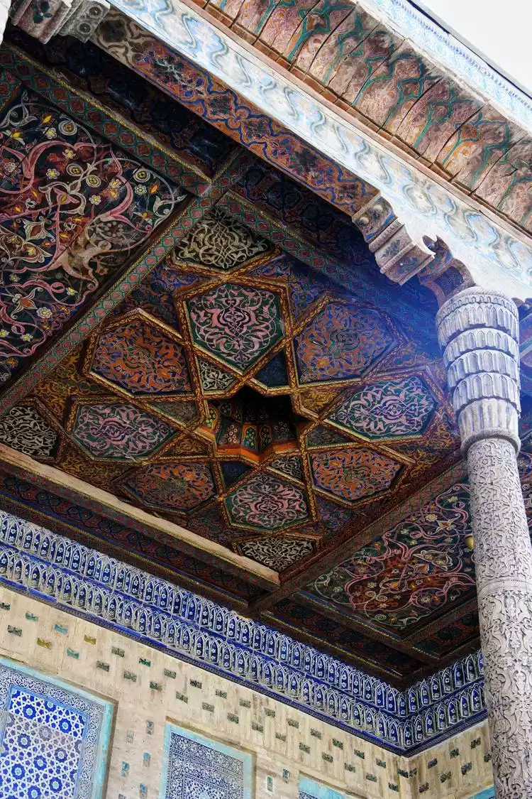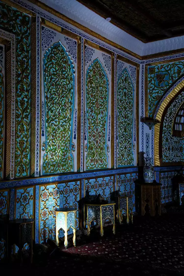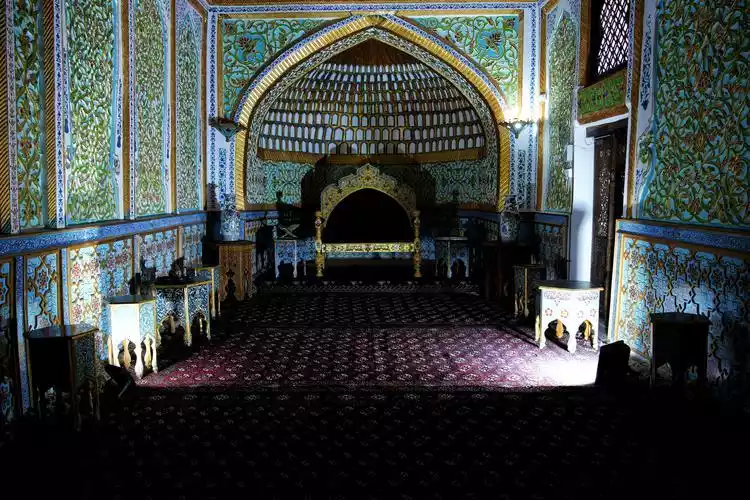 The Stone Palace was built by Alakul Khan between 1832 and 1841. It has gorgeous blue walls and intricately carved stone pillars.