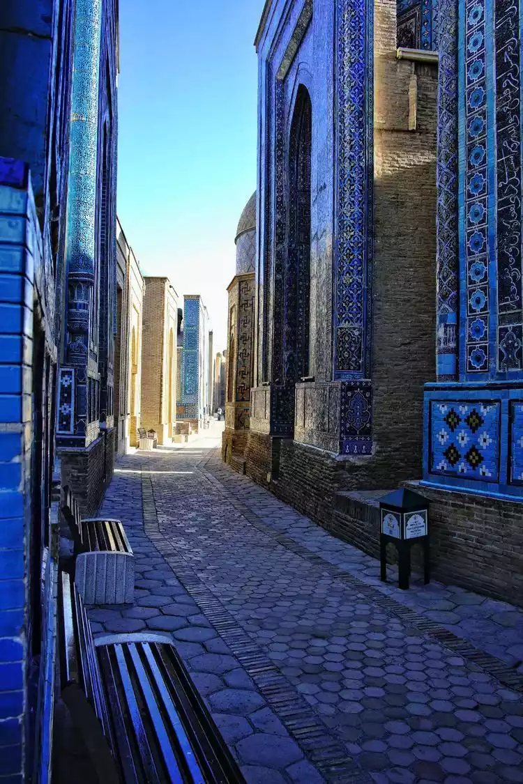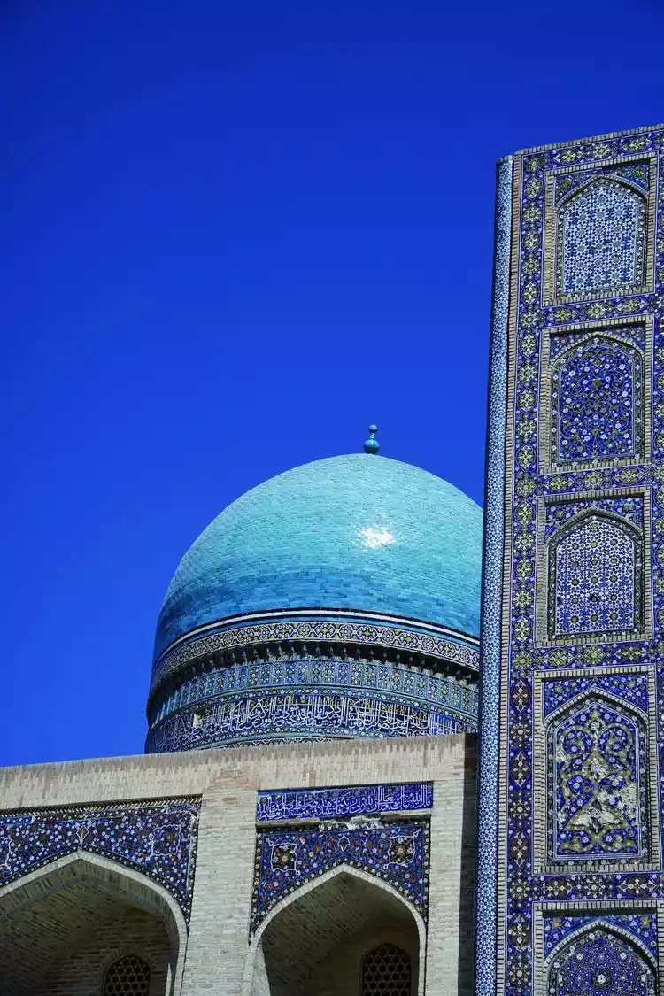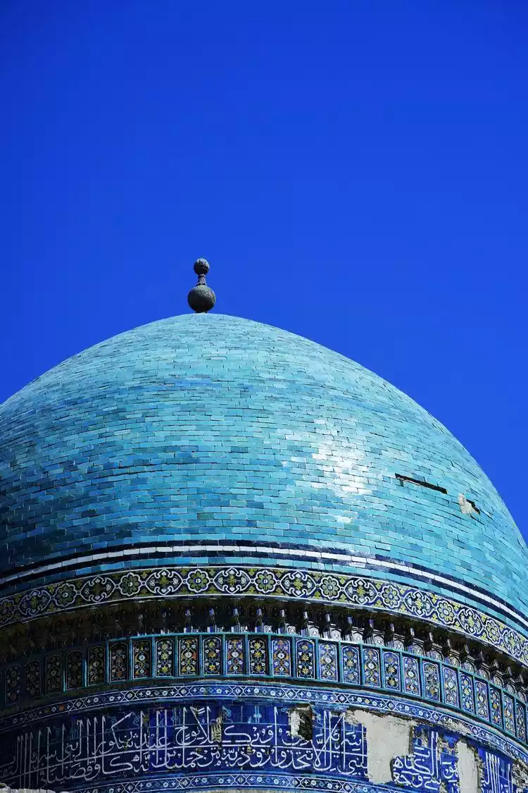 Shah-i-Zinda, meaning "Tomb of the Living King," is an avenue of mausoleums where the princesses and nobles of the Ulugh Beg era are buried. Ascending the steps, you pass by magnificent mausoleums, a variety of classic Arabic domes come into view, and the blue-green tiles glow softly in the sunlight. The exquisite tiles tell of the ancient city's former glory. Walking here is like stepping back into "One Thousand and One Nights," a fairytale land right at your feet.