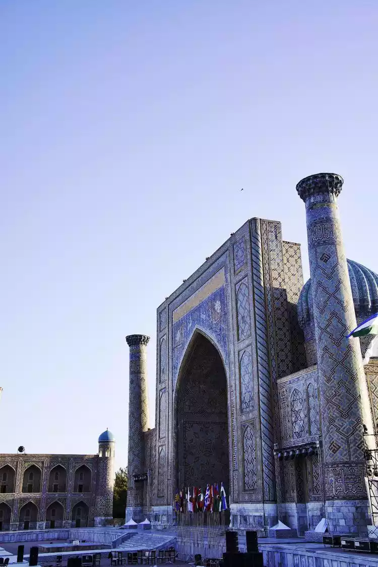 Surrounded by three massive madrasas in the heart of Rekistan, you'll be amazed and overwhelmed by the sheer scale of these monumental structures...