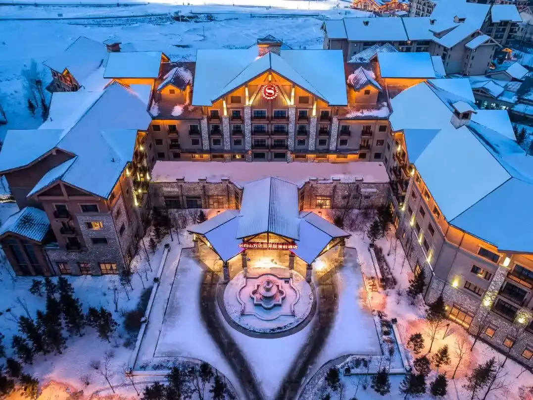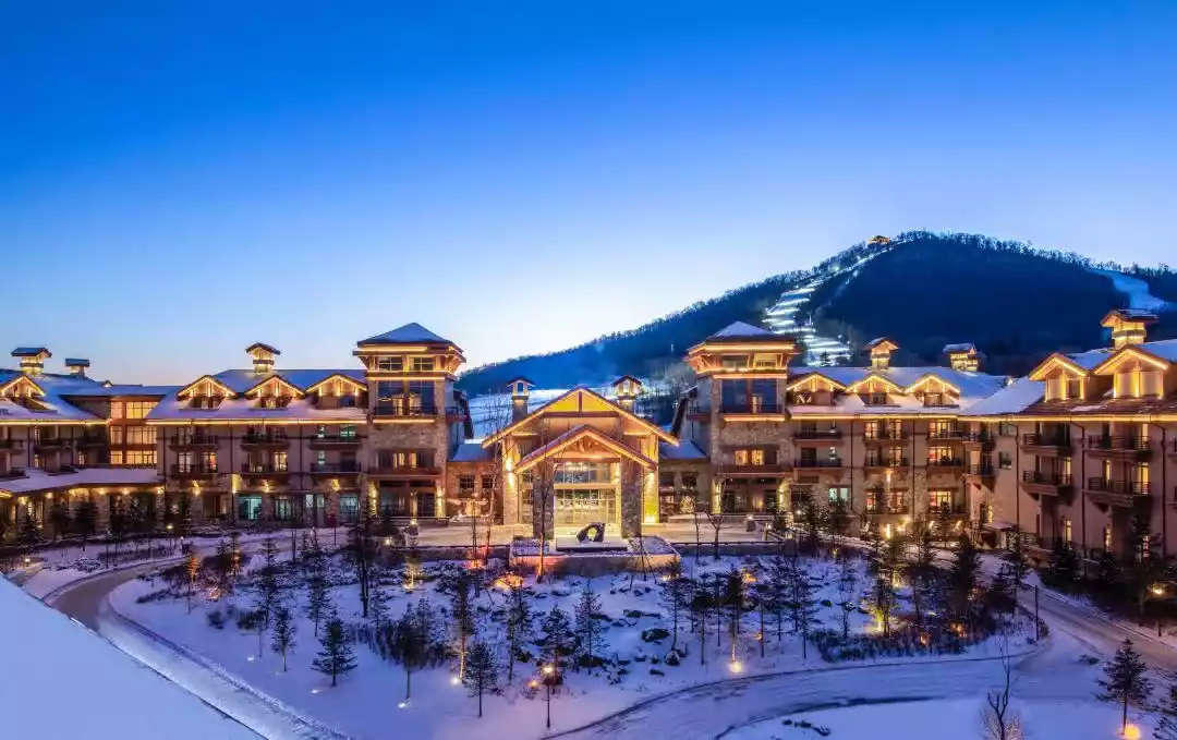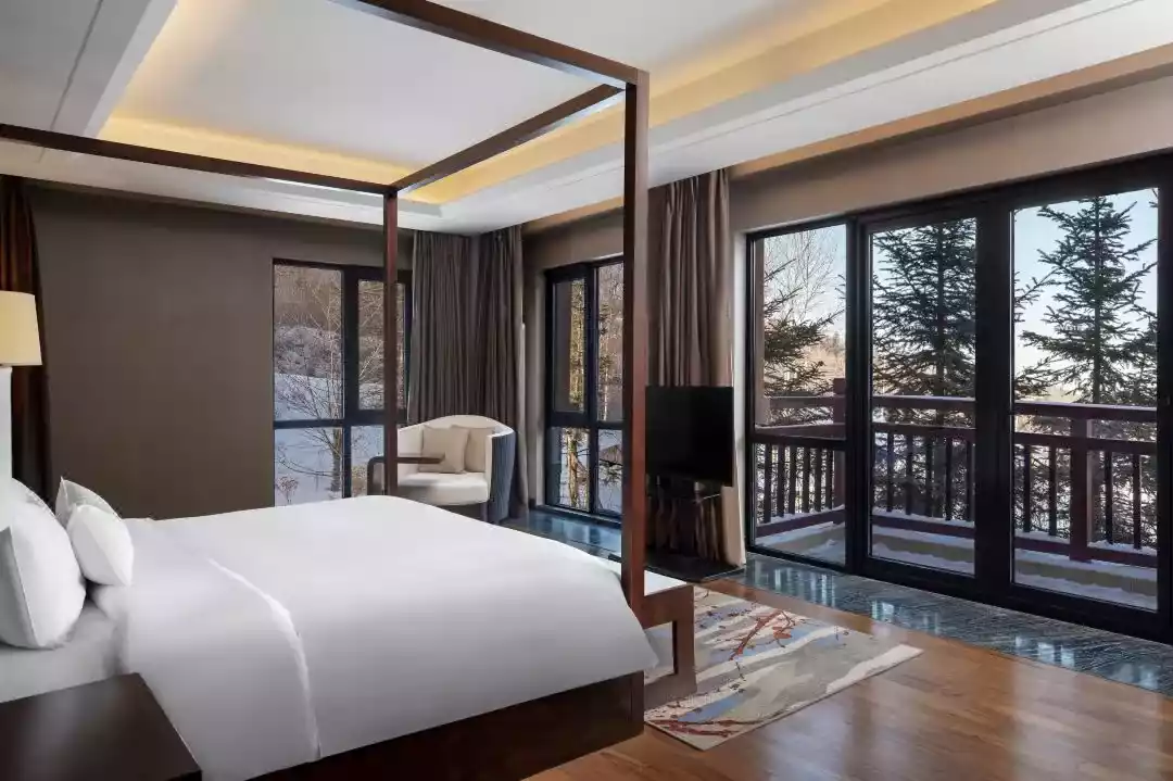 This hotel stands out for its striking Nordic-style log cabin design. Rooms start at 44 square meters and feature balconies and large floor-to-ceiling windows, offering an unparalleled snow-viewing experience. The hotel offers exceptional privacy, close to an artificial lake and a resort town, with breathtaking views of Changbai Mountain.