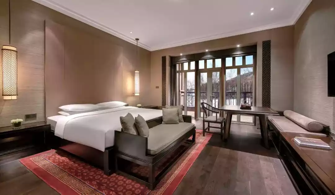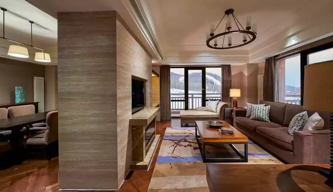The resort also features unique amenities such as an indoor underwater music swimming pool, an outdoor natural mineral hot spring pool, and an indoor massage and surfing pool designed exclusively for Park Hyatt guests. A 24-hour fitness center, sauna, and steam room are also available, providing guests with a wide variety of leisure and entertainment options. Furthermore, the resort boasts its own ski slopes and ski equipment, allowing guests to fully experience the thrill of skiing while enjoying a luxurious stay.