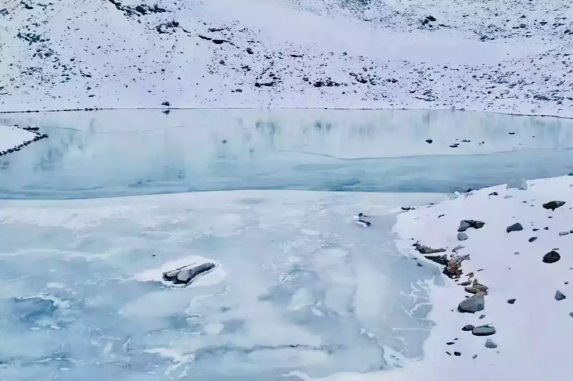 In winter, the Golden Monkey Lake beneath the Dagu Glacier is home to herds of Tibetan macaques, who stay for nearly five months. The clear waters reflect the glacier's snowy landscape, while the lively and clever macaques add a touch of life to the landscape.