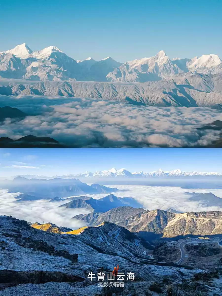 Niubei Mountain has Asia's largest 360° snow mountain viewing platform, from which you can have a panoramic view of Bijia Mountain, Tianhaizi Mountain, Hengduan Mountains, and Gongga Snow Mountain, the highest peak in Sichuan.