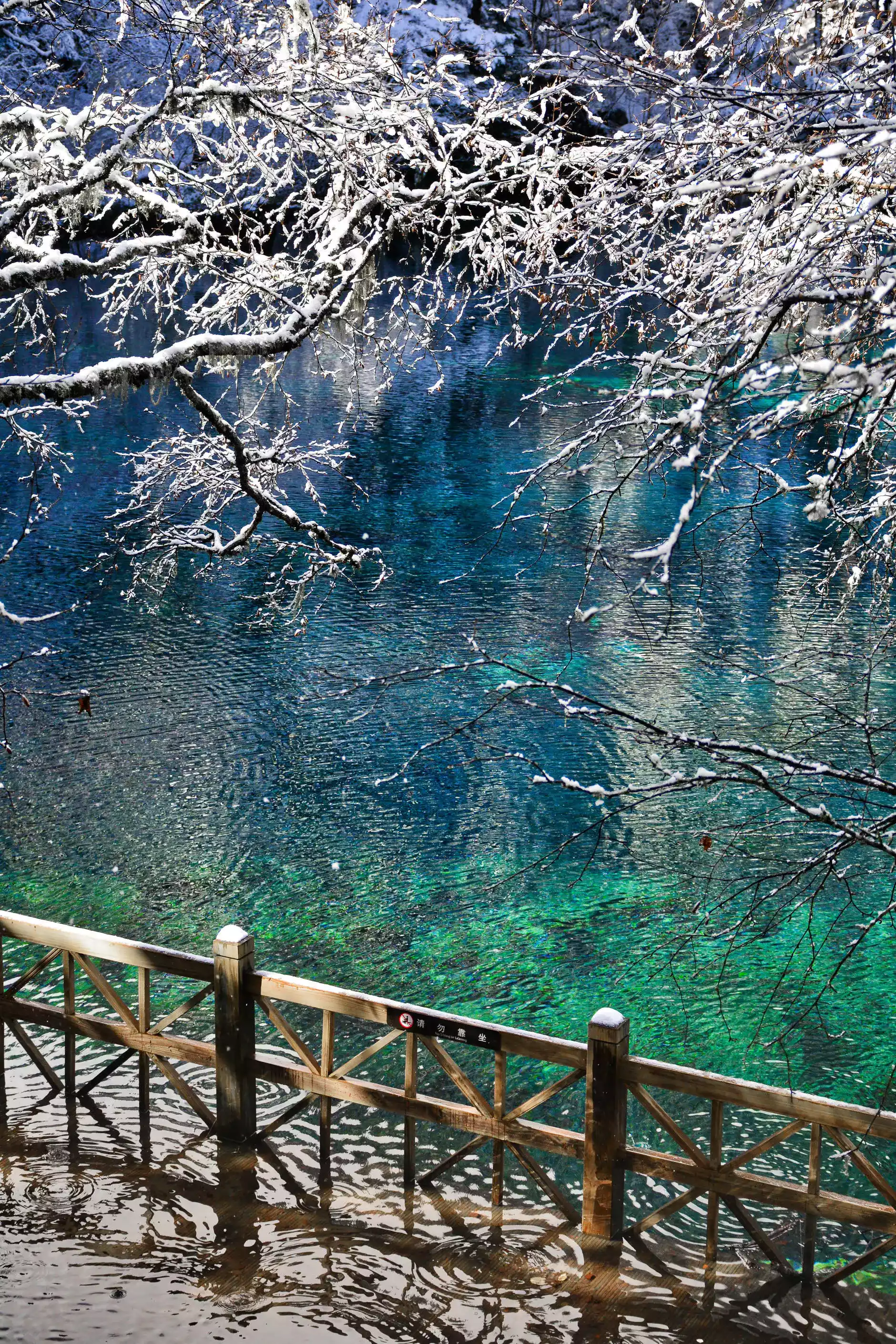 If you want to avoid the crowds, don't miss Jiuzhaigou in winter. It is the off-season now, so you can avoid the crowds and appreciate the original beauty of Jiuzhaigou. You can wander in the beautiful scenery of green sea, ice waterfalls and snow-capped peaks.