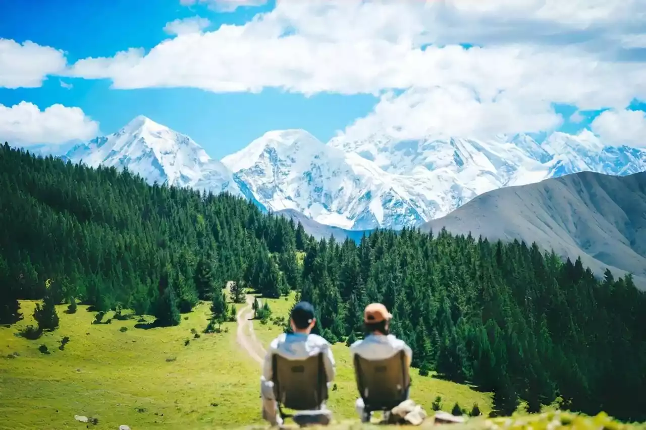 In May, outdoor petty bourgeoisie moments under the snow-capped mountains