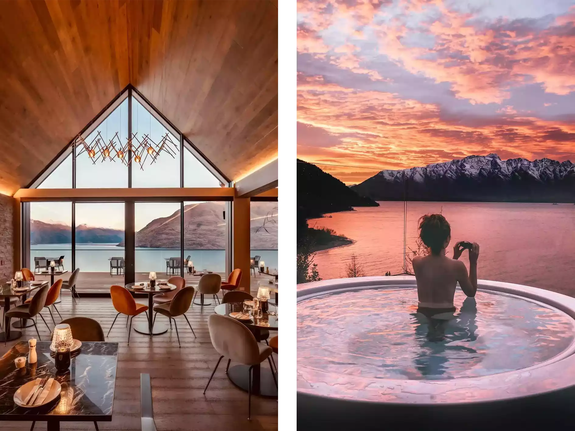 Step into a restaurant by the snow-capped mountains and lake in Queenstown and face the lake view: