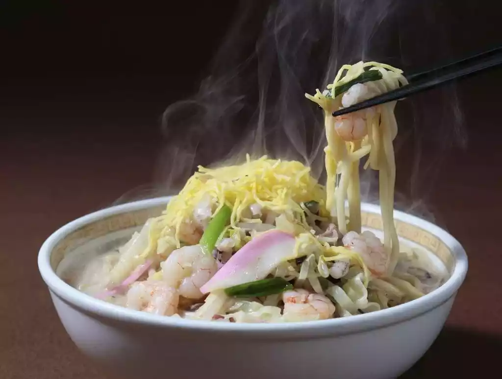 First created by Chinese expatriate Chen Pingshun (from Fuqing, Fujian) in the late 19th century at the Sihailou restaurant, Nagasaki chanpon (ちゃんぽん) has long been a staple of the city. Originally intended to provide a nutritious and affordable meal for international students, chanpon is a thick noodle base, simmered with over a dozen ingredients, including pork, shrimp, katsuobushi, and bok choy. The broth is so rich and complex, so rich in flavor, that locals often jokingly say, "Champon soup runs in Nagasaki's veins."