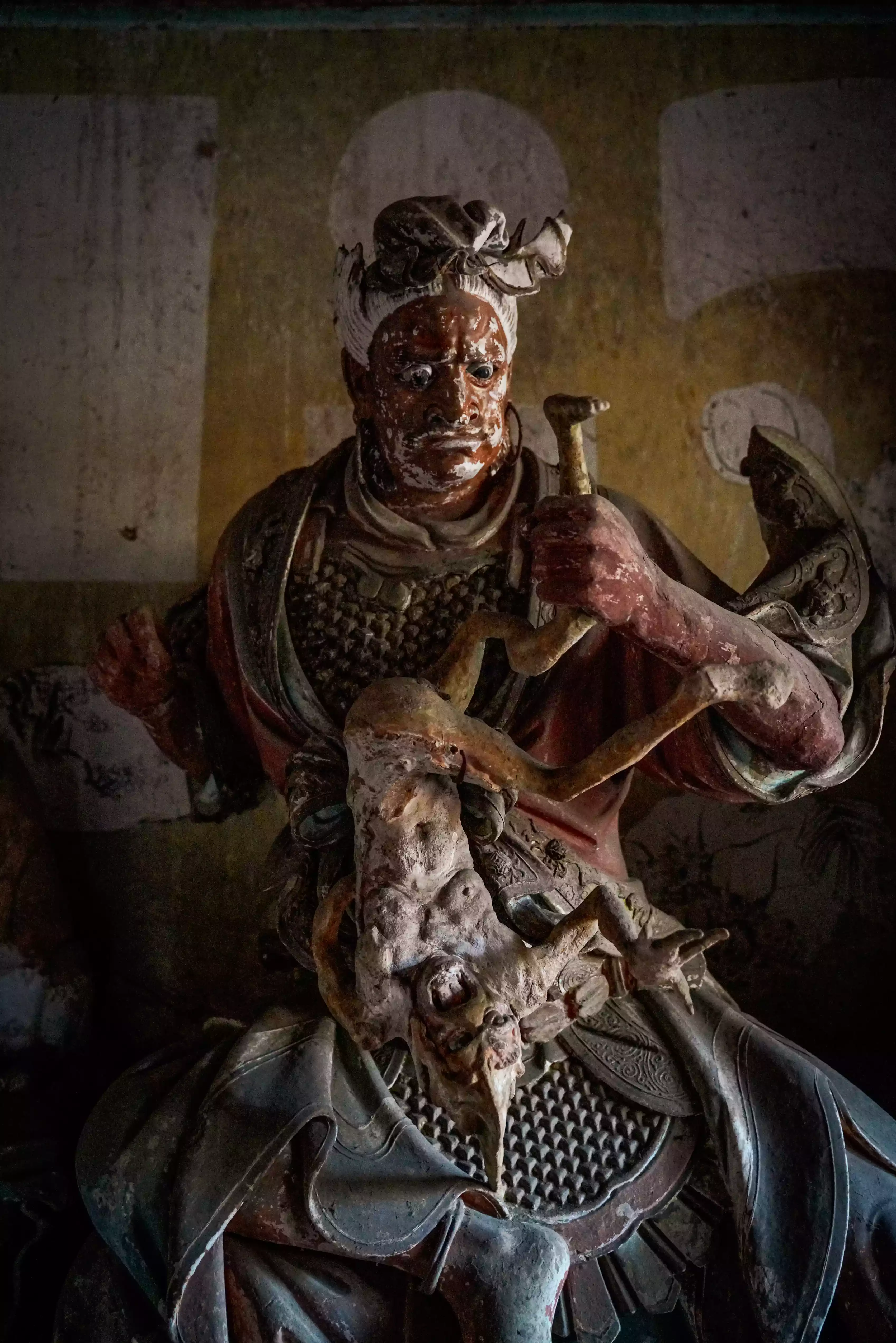 The Jidu Temple in Jiyuan houses the earliest existing ancient wooden structure in Henan Province, with a total of more than 30 ancient buildings from the Song, Yuan, Ming and Qing dynasties, which are magnificent. Here you can see the ancient people's reverence for the water god; the Fengxian Temple has a Jin Dynasty hanging mountain top hall, which uses a reduced column structure to make the space more open. What's even more amazing is that the wood used was peeled and used without any modification, which shows the boldness of the ethnic minorities at that time. Liang Sicheng also called it "bold technique and unique thinking"; the only remaining mural of the Heavenly King from the Yuan Dynasty in the Cisheng Temple is majestic and flying, making people linger.