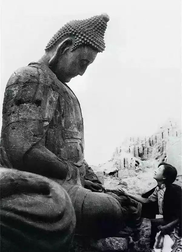 Lin Huiyin took a photo with the Iron Buddha of Lingyan Temple in Xiaoxiang Village