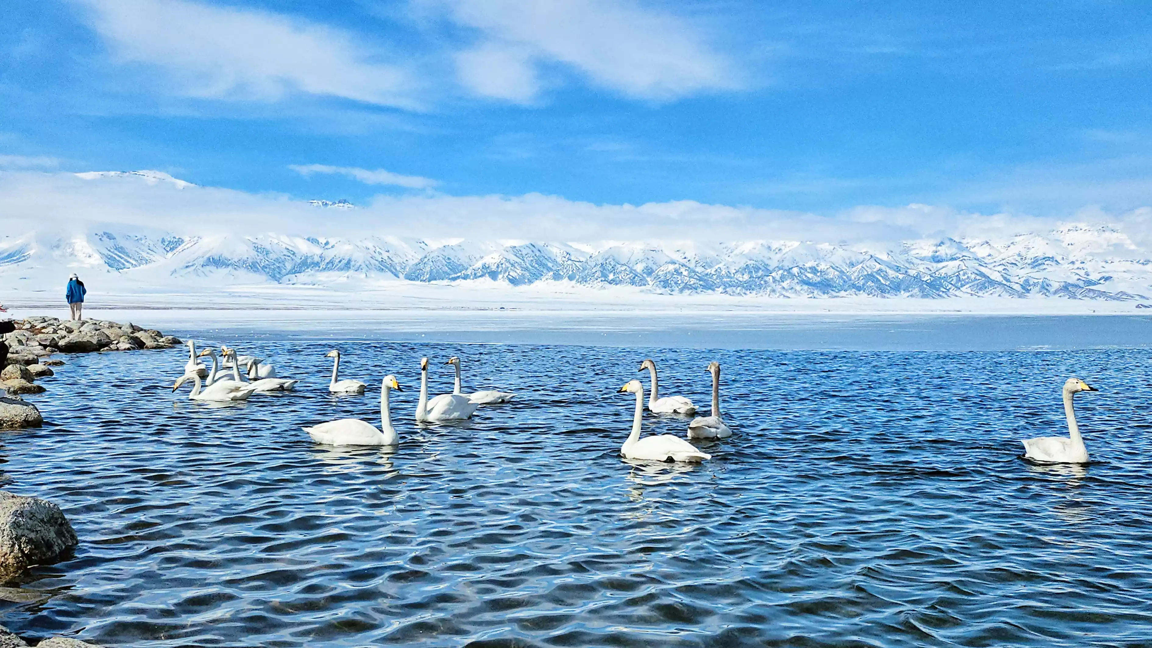 Sayram Lake in April is a whisper of ice and blue light. The azure waters awaken from their slumber, and the wind pushes shattered ice crystals ashore, creating a spectacular "ice push."