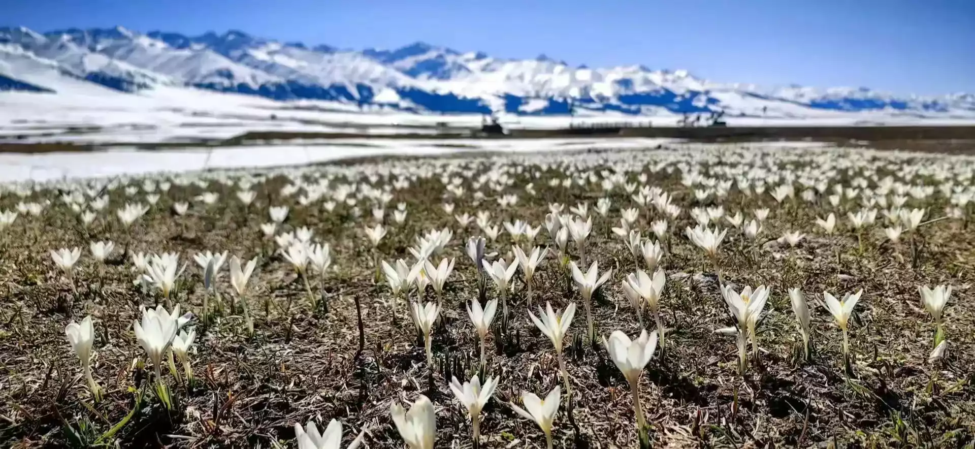 At this time in Nalati, "wild lilies" broke through the remaining snow, and the mountains with unmelted snow hung like silver crowns.