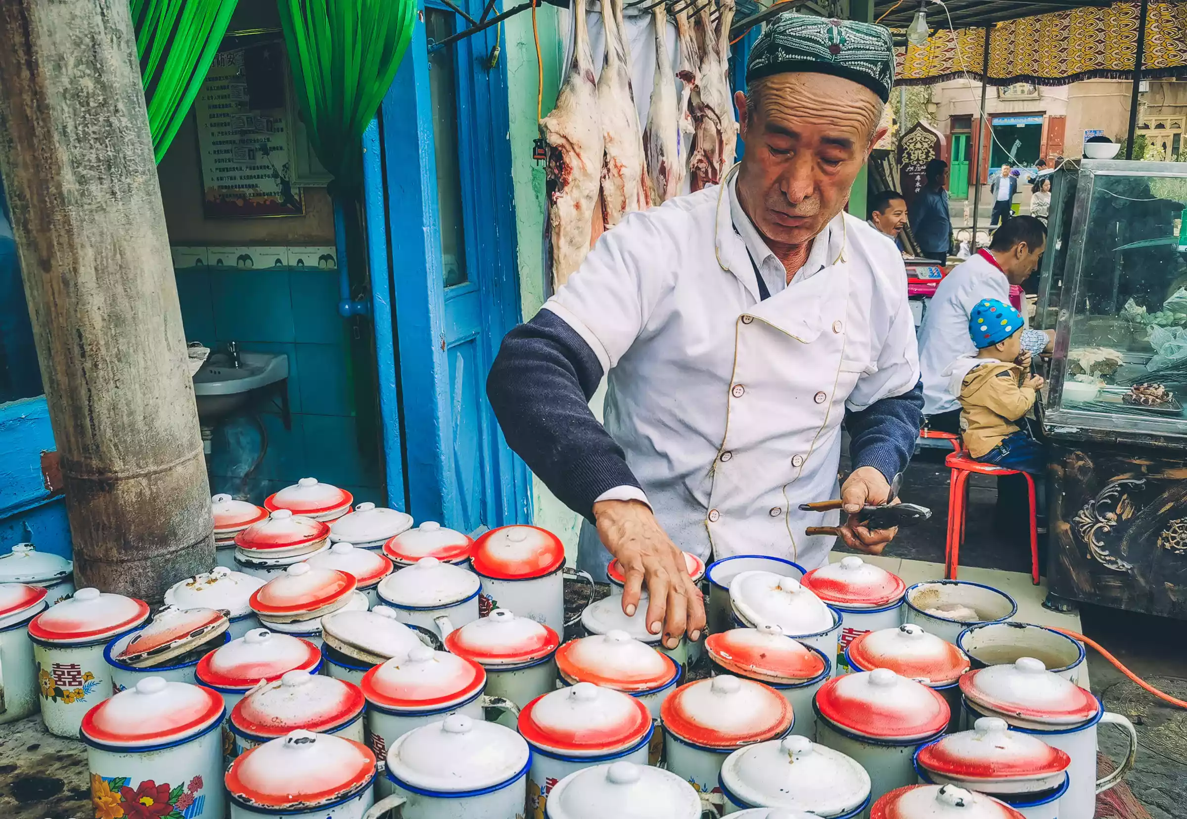 In the alley, there are craftsmen hammering copperware, smoke rising from the naan oven, and the sound of blacksmithing and the aroma of coffee colliding between the ochre walls.