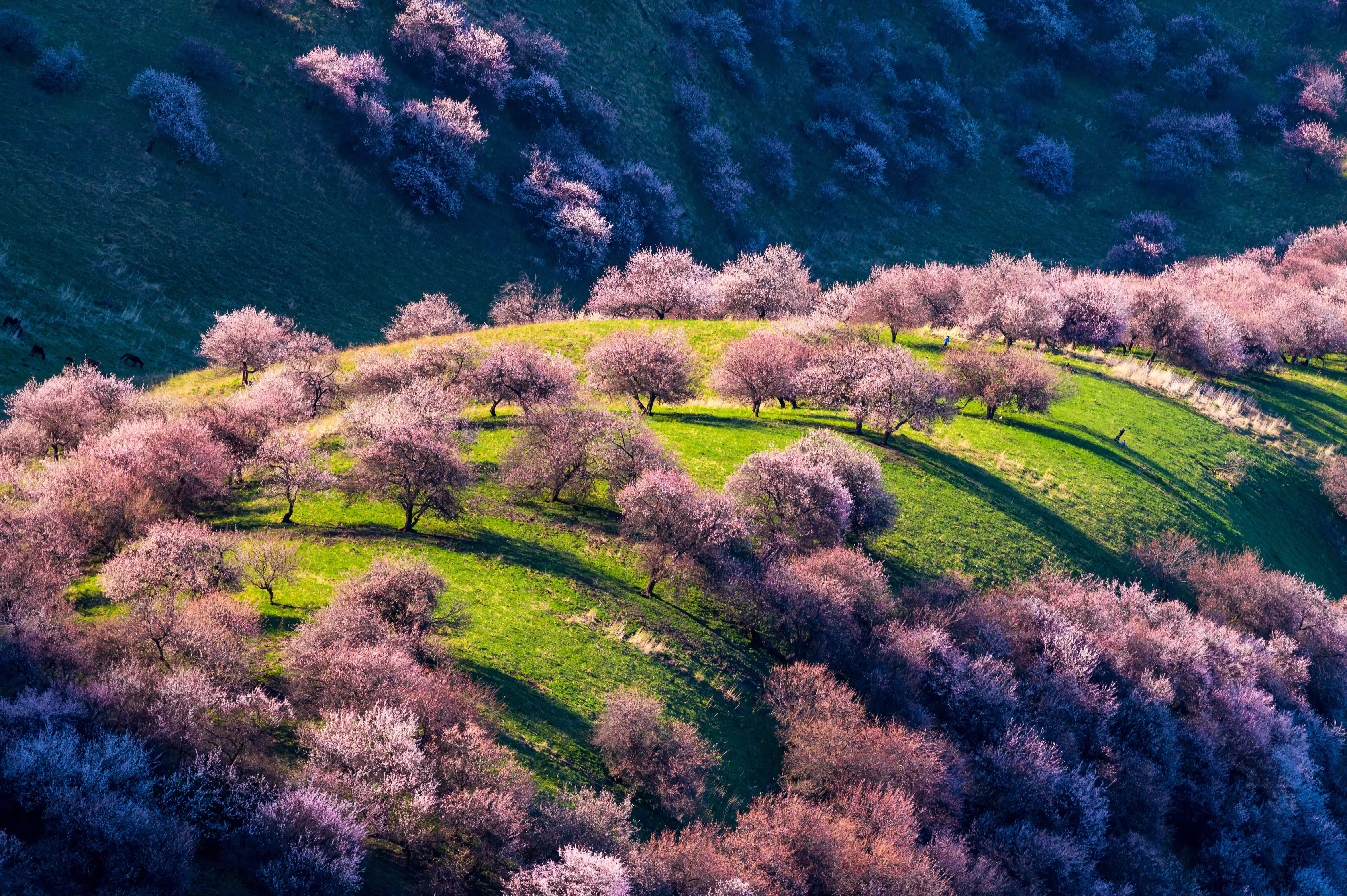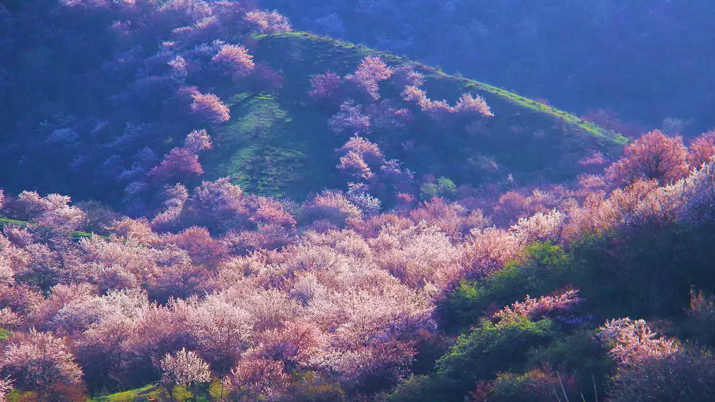 The apricot blossoms are the rouge it shakes off, half of which floats to the Ili River Valley, weaving 30,000 acres of pink and white mist, and the other half falls on the cliffs of the Pamirs, dyeing the cold snow peaks into a gentle place.