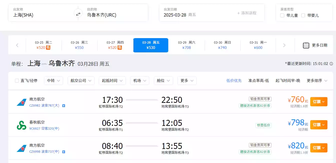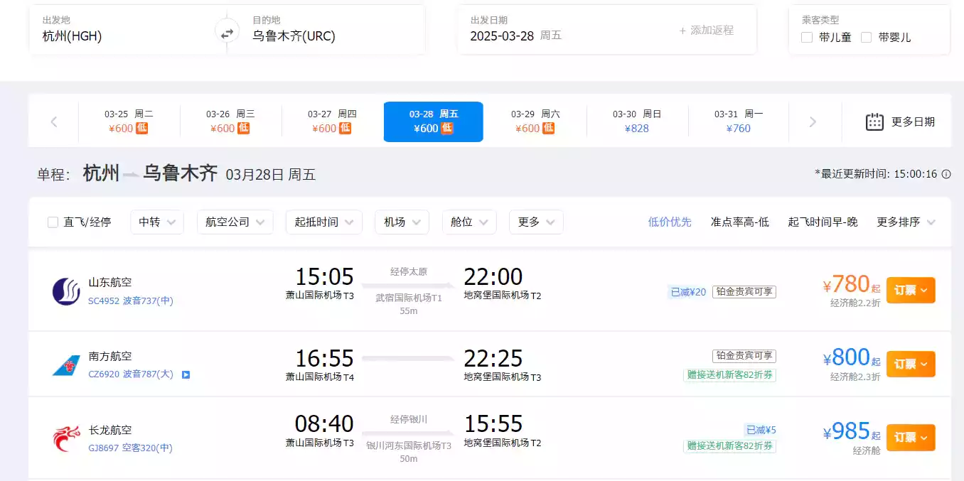 Urumqi: Taking Hangzhou/Shanghai as an example, instead of paying 3,000+ yuan for a one-way ticket during the peak season, tickets at the end of March start at only 800 yuan!