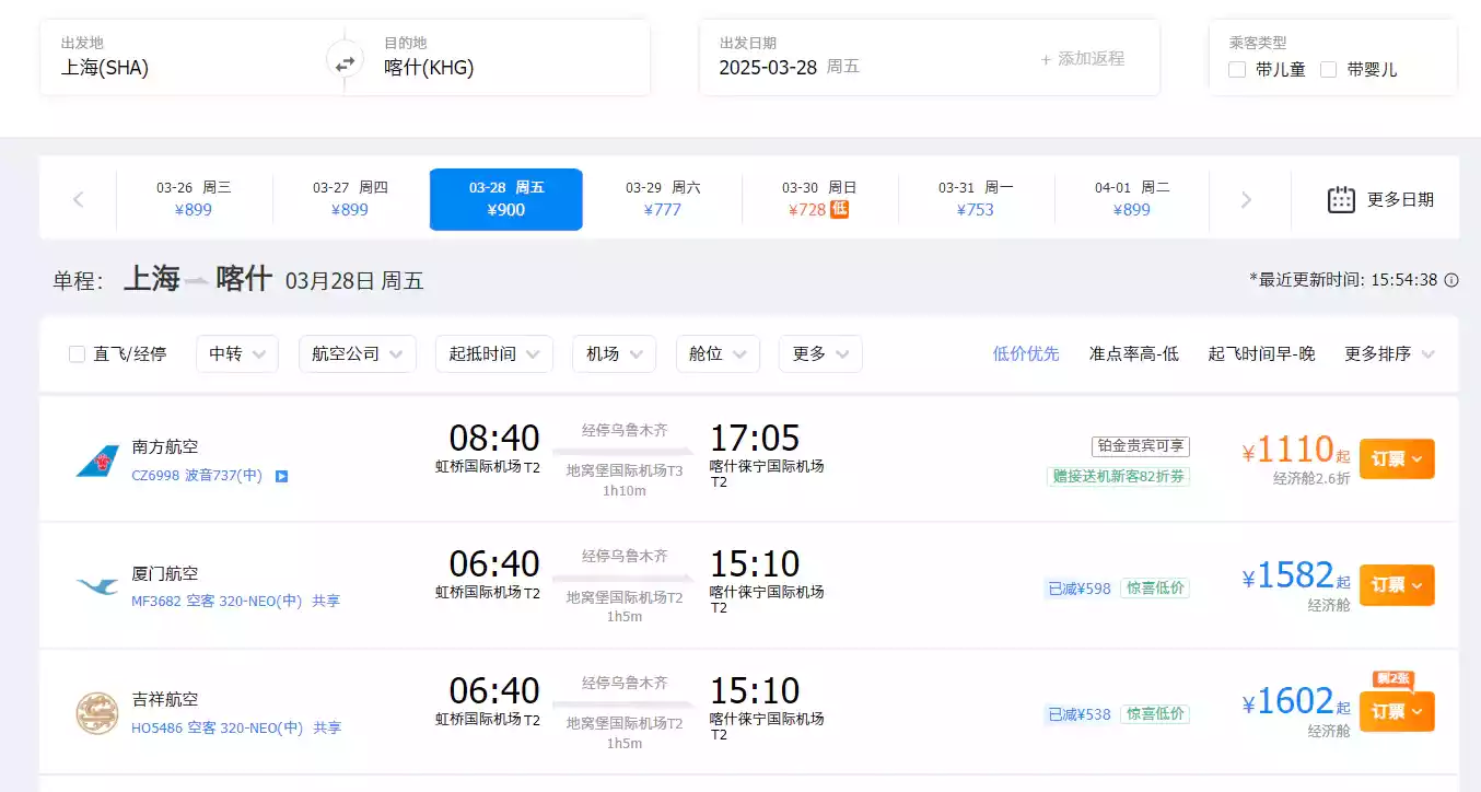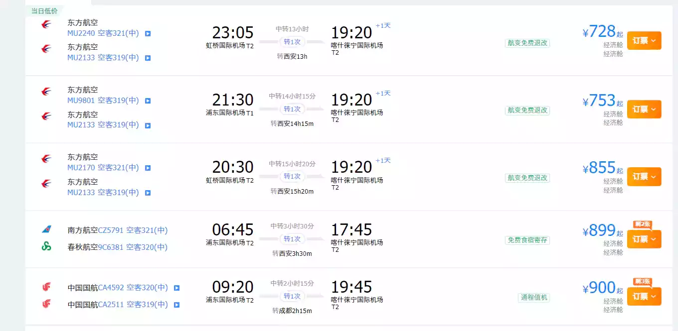 Kashgar: Taking Shanghai as an example, the price for a direct flight with a stopover is only 1,500 yuan without transfer; if you can accept a transfer, the price will directly reach 800+!