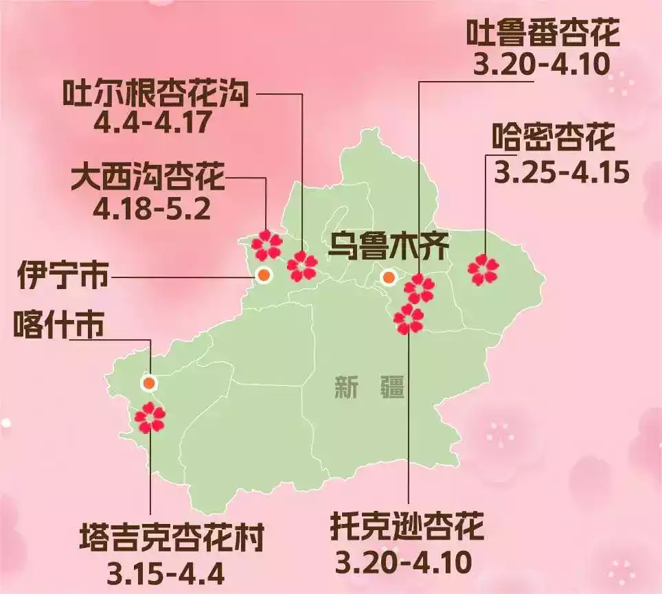 As early as 10 years ago, we started designing the apricot blossom route, knowing that what everyone cares about most every year is the flowering period. This year, our senior Xinjiang product managers also provided professional flowering period analysis and predictions for everyone based on many years of experience.