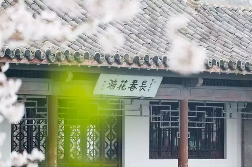 Climb up to the Cherry Blossom Viewing Tower and take in the panoramic view of the entire Cherry Blossom Valley and the surrounding Taihu Lake. The pink cherry blossoms and the shimmering Taihu Lake form a stunning painting.