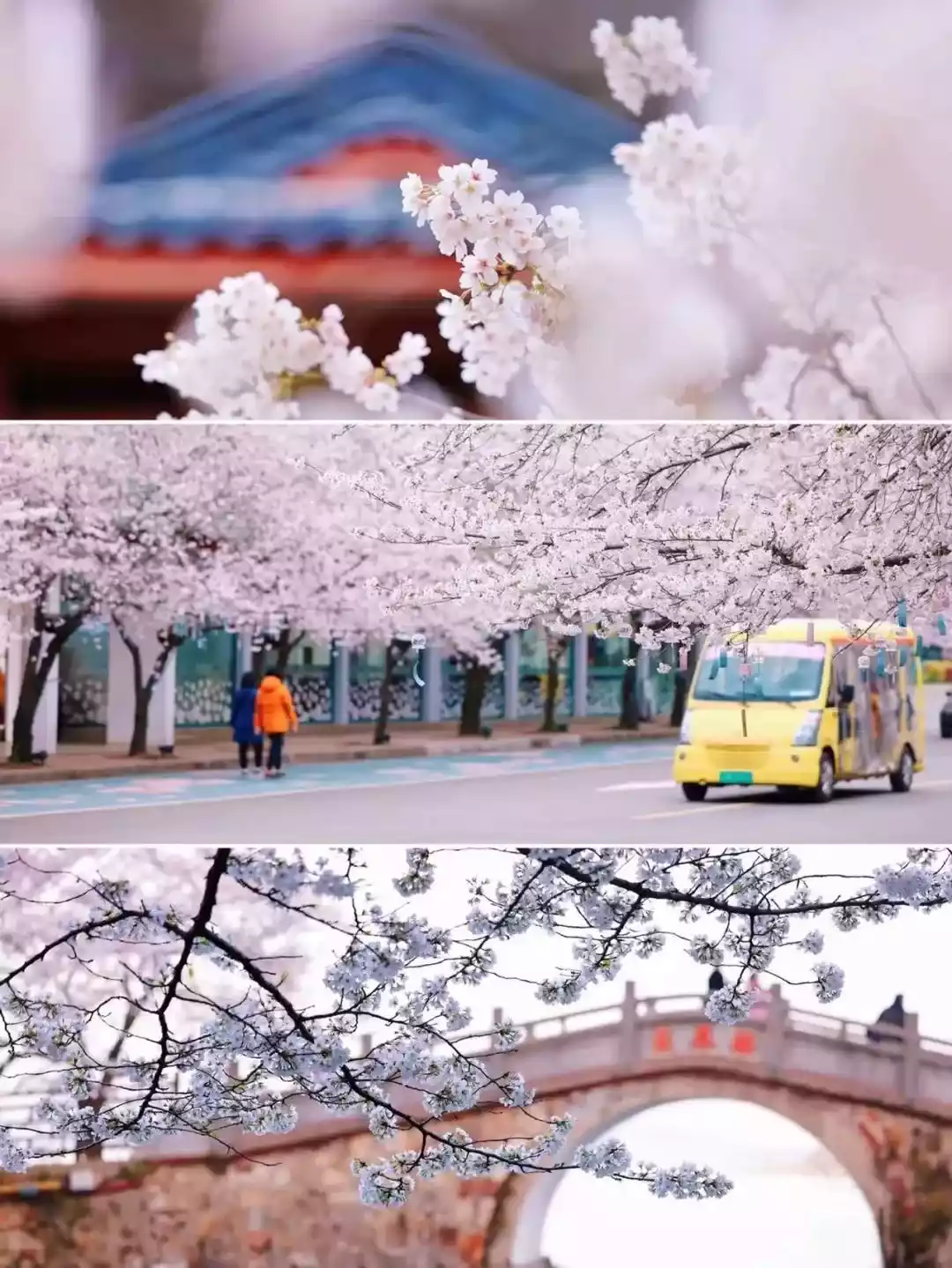 Cherry blossoms are in full bloom by the bridge. When the breeze blows, the petals fall to the water like snow, forming a beautiful landscape of "flowers falling and red water flowing". It is a popular spot for tourists to take photos and check in.