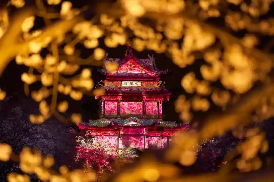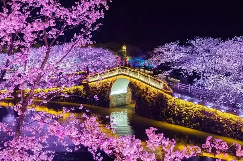 The night view of the cherry blossoms at Yuantouzhu is doubly magical. As night falls and the lights come on, the cherry blossoms seem to be given new life under the illumination.
