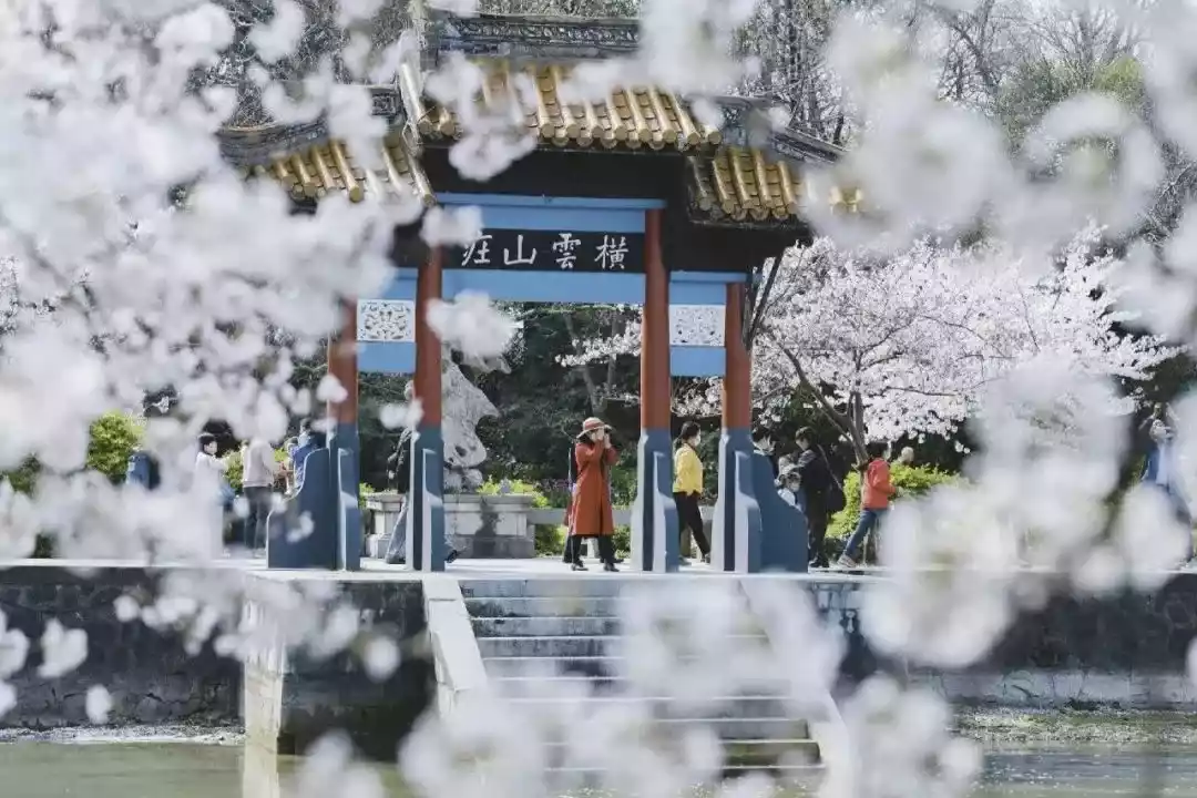 The history of cherry blossom viewing at Yuantouzhu can be traced back to 1933, when the owner of the garden, Yang Hanxi, selected the famous Kyoto variety "Somei Yoshino" from among countless cherry blossoms, which "looks like fog from a distance when in bloom, a spectacular sight", and planted it beside Changchun Bridge.