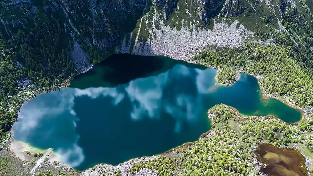 In summer, Dangling is shaded by lush greenery, with flowers dotting the mountainsides. In autumn, the trees and colorful forests of Dangling are breathtakingly beautiful. Combined with the azure lakes and towering Three Sacred Mountains, Dangling's secretive scenery is worth a visit in any season. The reflections of Hulu Lake reveal some of western Sichuan's most hidden gems.