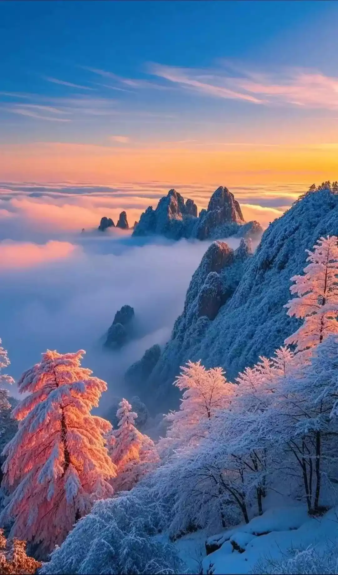In winter, a visit to Mangshan is a must, to admire the stunning mountain scenery and pristine natural ecology at the junction of Hunan and Guangdong. Autumn and winter are like a fairyland, with rolling seas of clouds and vast expanses of snow, a scene both majestic and beautiful. Rime and icicles blanket the mountains, shimmering in the sunlight like a fairytale of ice and snow.