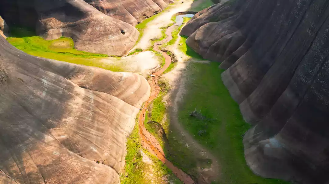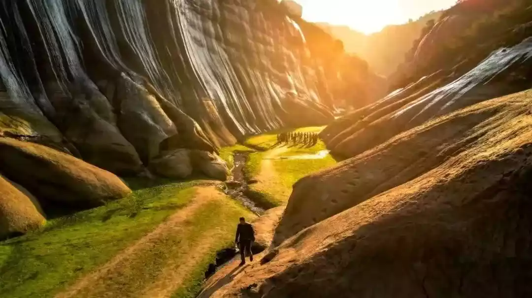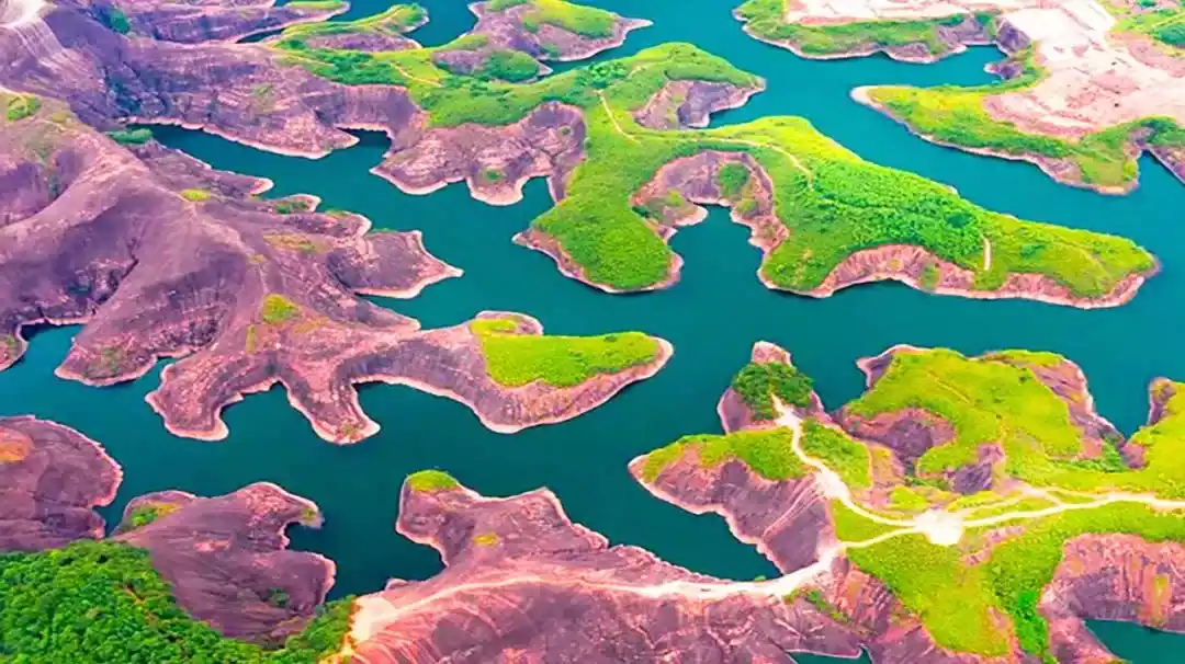 Most of the time, the canyon is hidden under the water, and only during the dry season from January to April each year will it be exposed. The bottom of the canyon is covered with green grass, and on both sides are towering Danxia boulders, which makes you travel back to the primitive land where dinosaurs lived in a second.