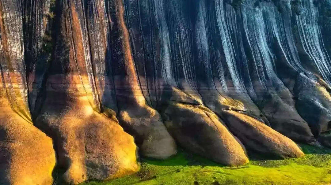 Red rock ridges and emerald green puddles intertwine like dancing pleated skirts. The mountain cliffs are naturally formed with wave-like rock patterns, which are magical and spectacular. The essence of Danxia is truly well-deserved.
