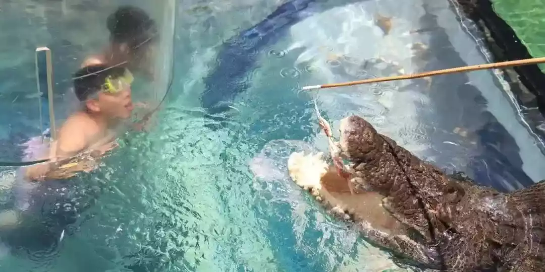 Witnessing a 5-meter-long giant crocodile leaping out of the water to grab food, or having "close contact" with these prehistoric creatures through the glass, will definitely give your adrenaline a rush!