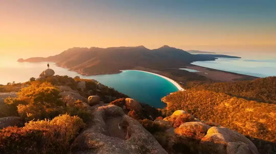 In Freycinet National Park, the Tiffany Blue Bay of Wineglass Bay is like a sapphire left by God. The crescent-shaped bay is a breathtaking blue in the sun.